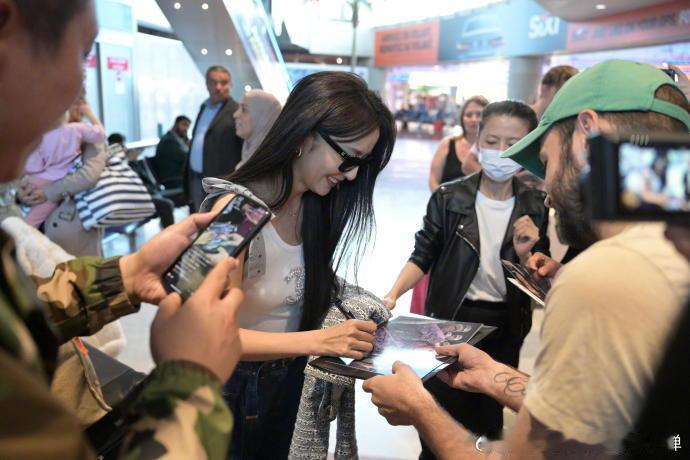 #佟丽娅抵达戛纳# 佟丽娅在机场与外国粉丝互动,亲和力十足,让人更加喜欢她了!