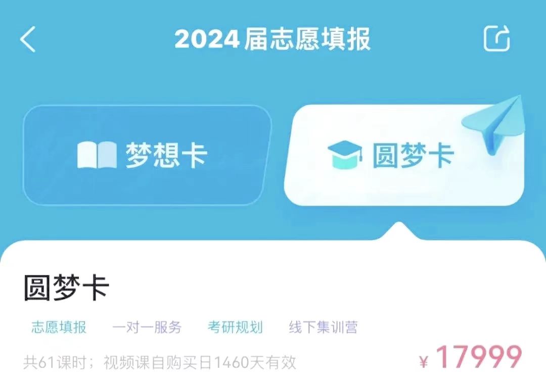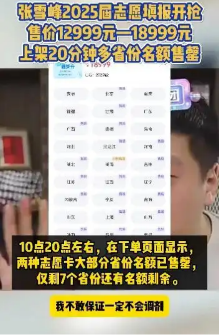 他一手打造的志愿填报服务,以12999元的“梦想卡”、18999元的“圆梦卡”标价,将未来明码出售。打着“底层学子代言人”的旗号,收割着无数家长望子成龙的焦虑。直播间里,他拍着胸脯高喊“对得起大家,对得起社会”,转身又轻描淡写地表示自己没有消费欲望,每天只穿那几件衣服,可他绝不会在直播间告诉你,他的志愿填报服务、教辅图书乃至各种培训班比一些同行卖的要贵得多,正如网友戏评“含泪赚几亿”。