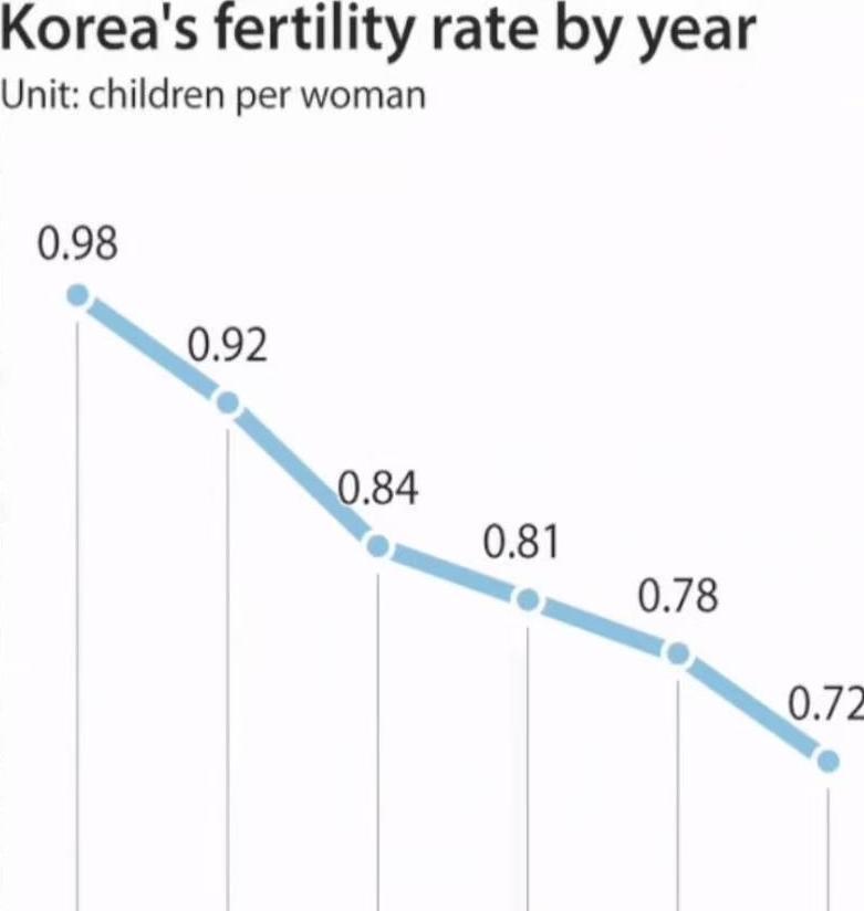你知道吗? 韩国2023年新生儿人数同比减少了7.7%,才23万人,总和生育率0.72,全球倒数第一! 这已经不是一年两年了,连续几年都这样,还创造了人类历史上的最低纪录呢。 韩国现在人口5100万,要想人口稳定发展,生育率得2.1才行。 可照现在这么降下去,专家估计到2100年,韩国人口得减少近一半,这速度比14世纪黑死病对欧洲的影响还快呢!