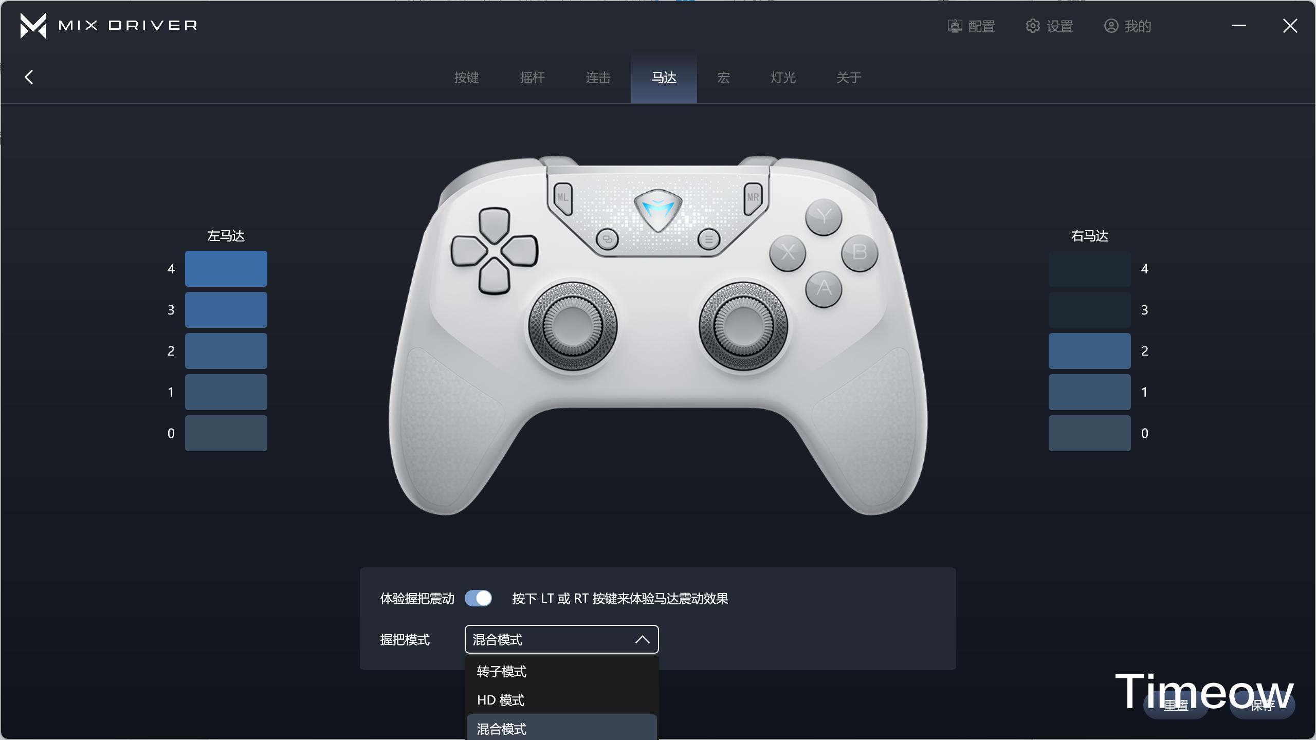这款手柄用上了索尼PS5同款音圈马达,可以设定左右的力度以及震动模式,不得不说,还是非常细腻的,只不过最大档位会震得M3/4肩键抖动。