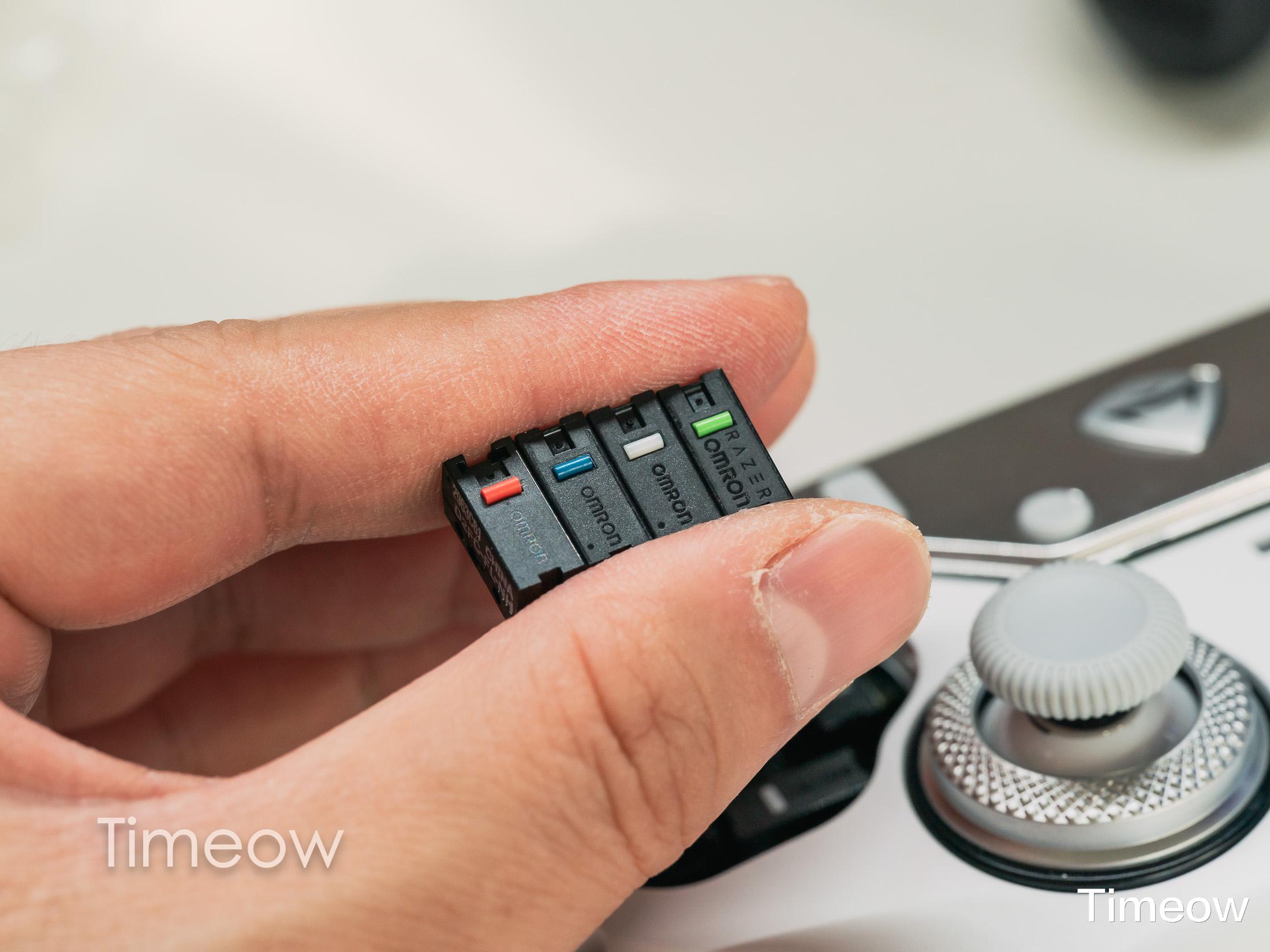 原装的是微动是光微动按键,响应更快、寿命更长。而我家里有凯华、欧姆龙、以及雷蛇欧姆龙的联名微动,它们都是三插脚的,用在F1上面都兼容,关键是他们的手感和体验各不相同,可玩性是真的高啊!