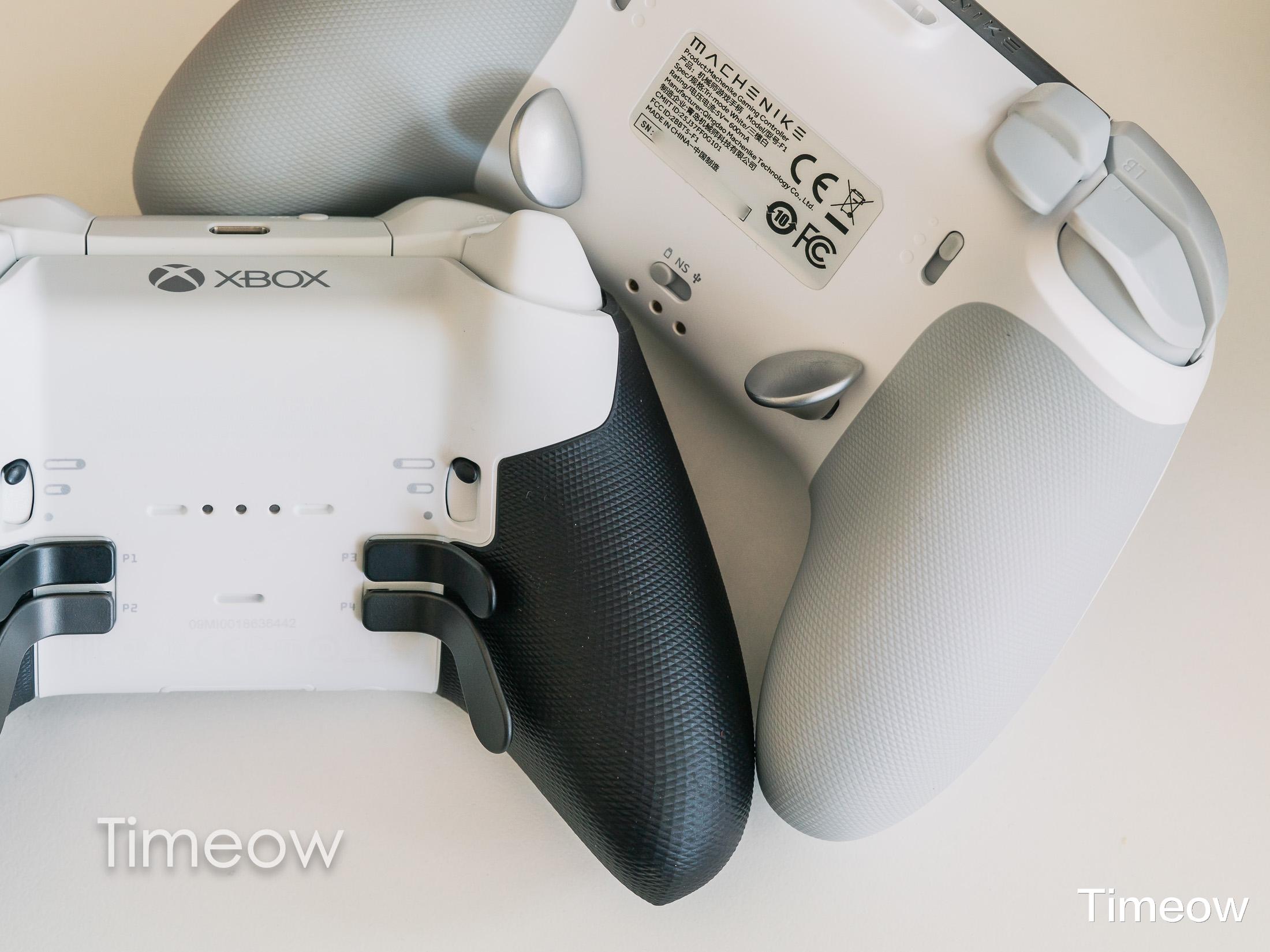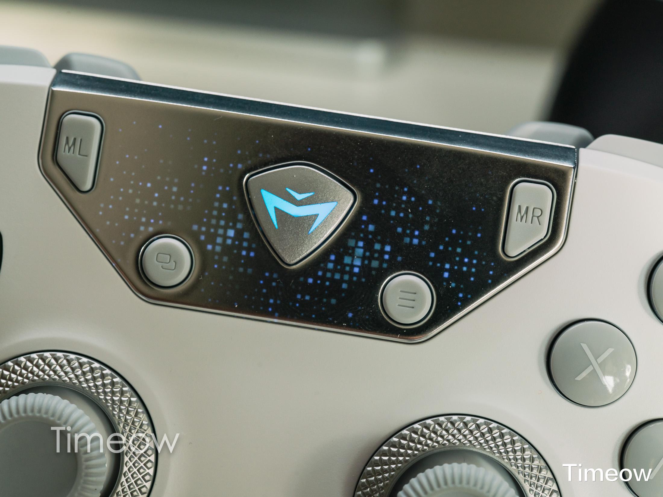F1整体的造型有点像是PS5手柄,但在细节上致敬了Xbox的精英手柄,融合了两款的特性去做了诸多改良: