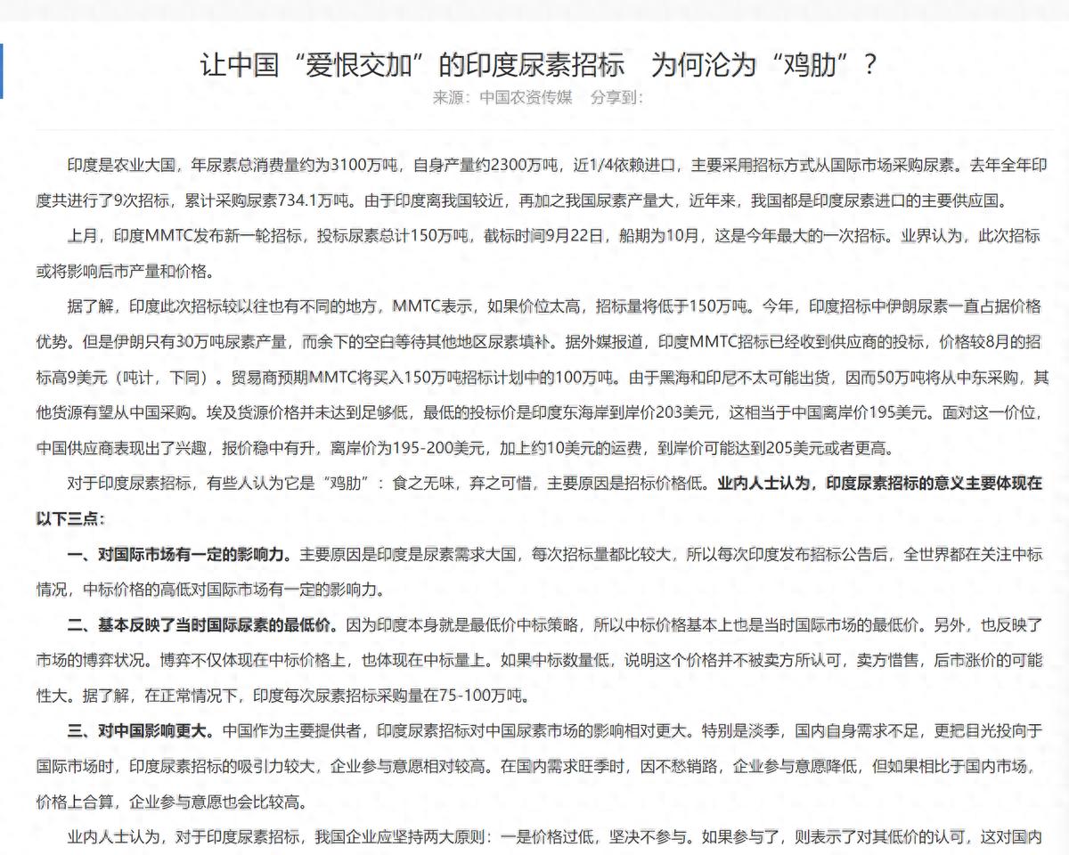 印度这个国家开始求我们了,因为中东航线断了,尿素用不起了,所以想要从我们这边大量购买尿素。