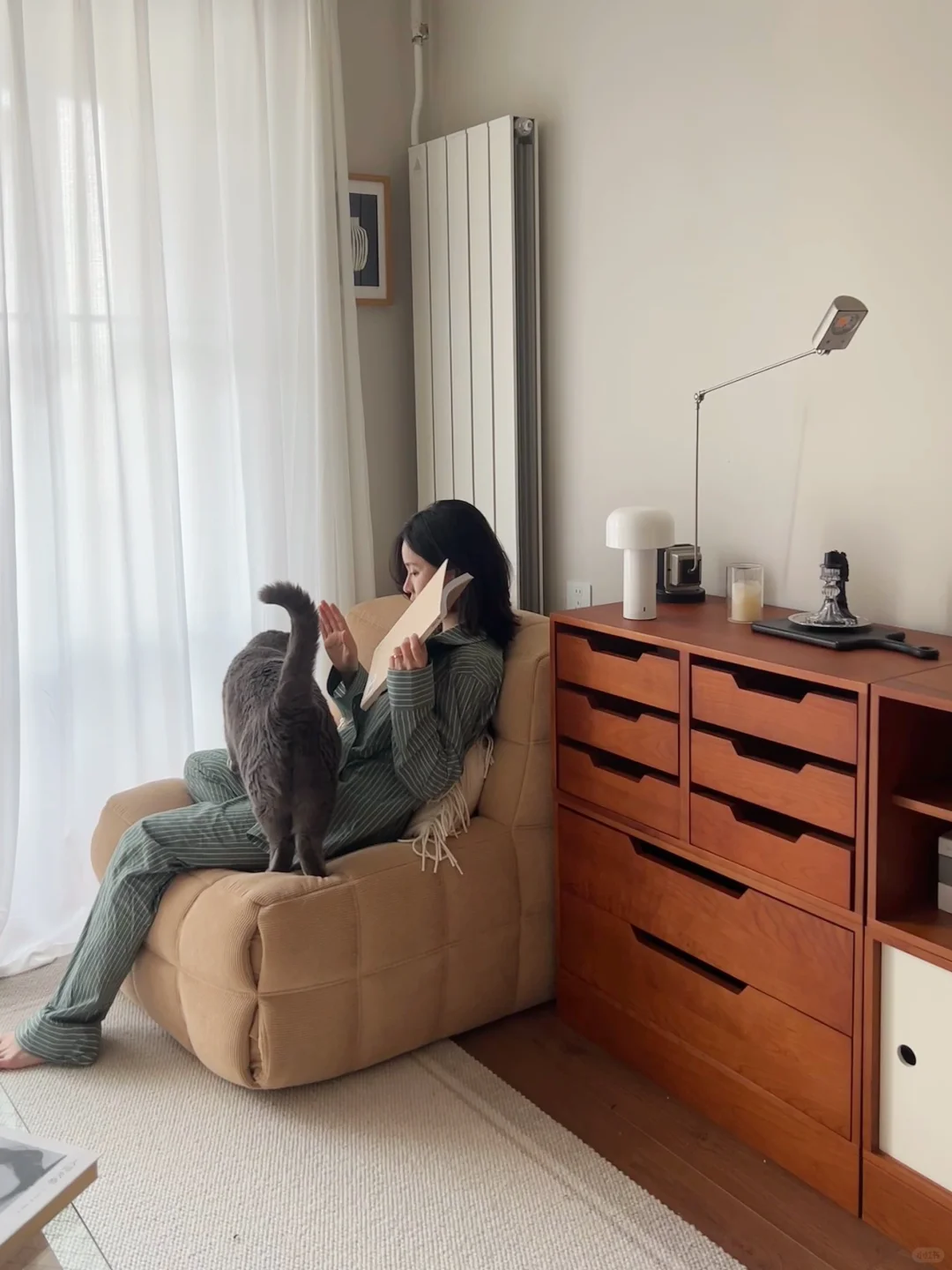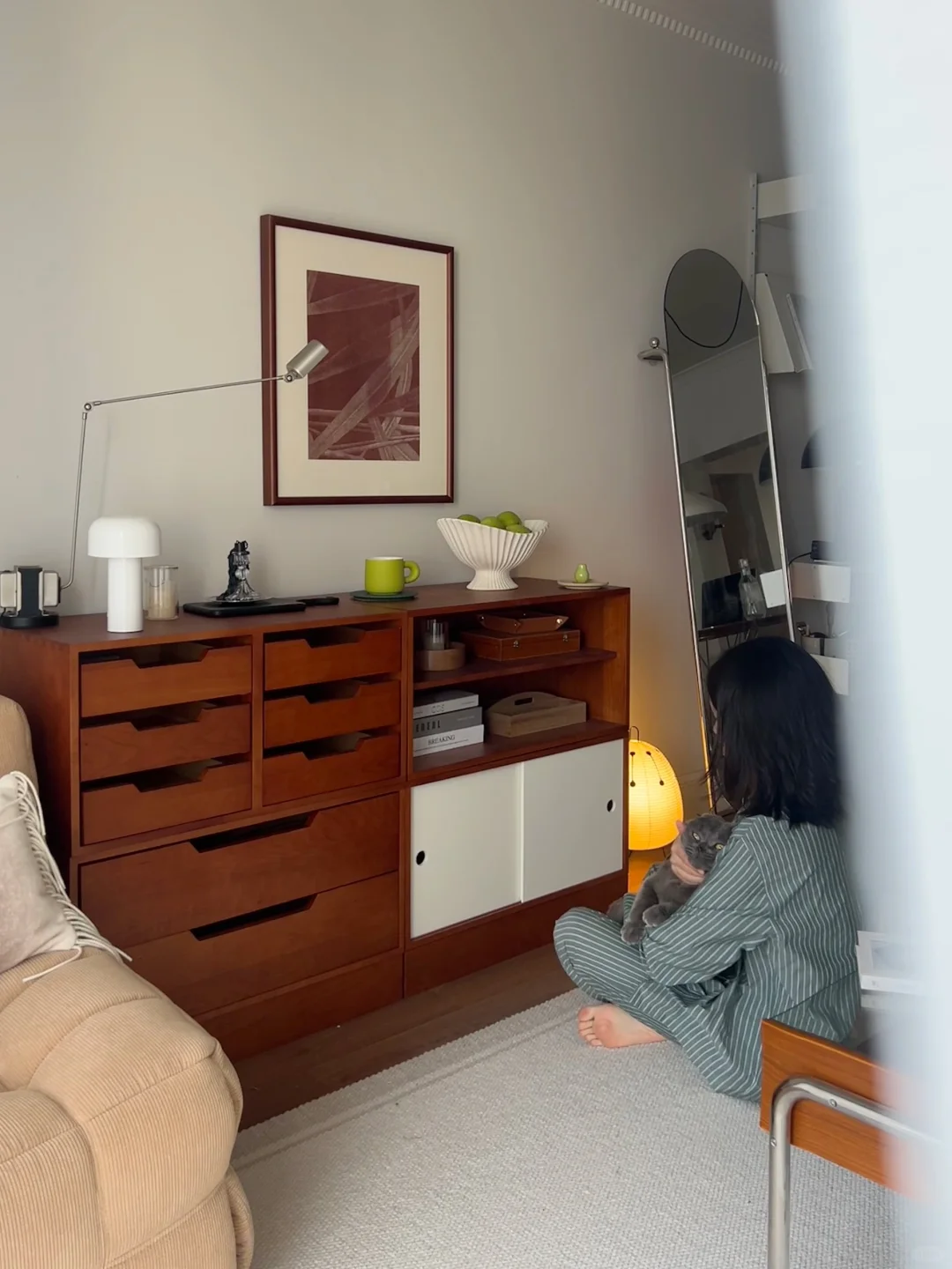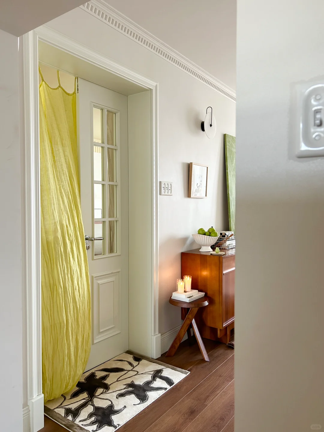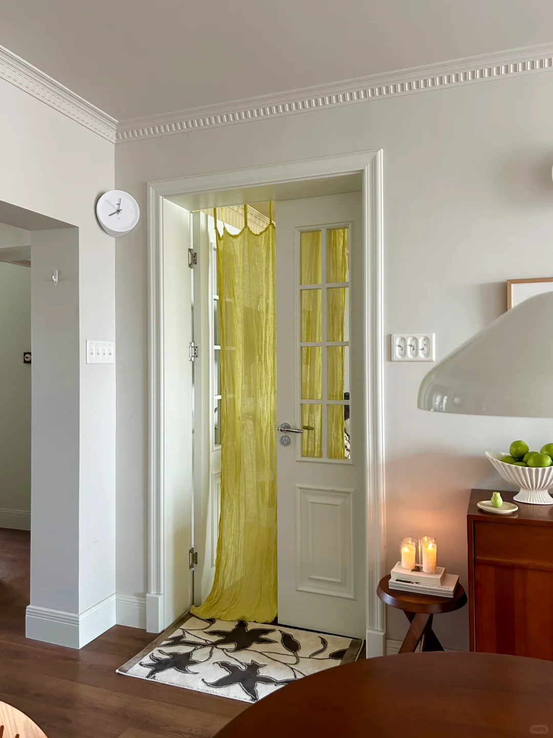 自然醒的春天 精神且绵软 慢悠悠的起床做了杯咖啡 把攒的一些快递拆了 心念已久的钟表🕙放在拐角很合适 微风吹起幔帘,和煦的春风在家里贯穿 . 小家:套内64平