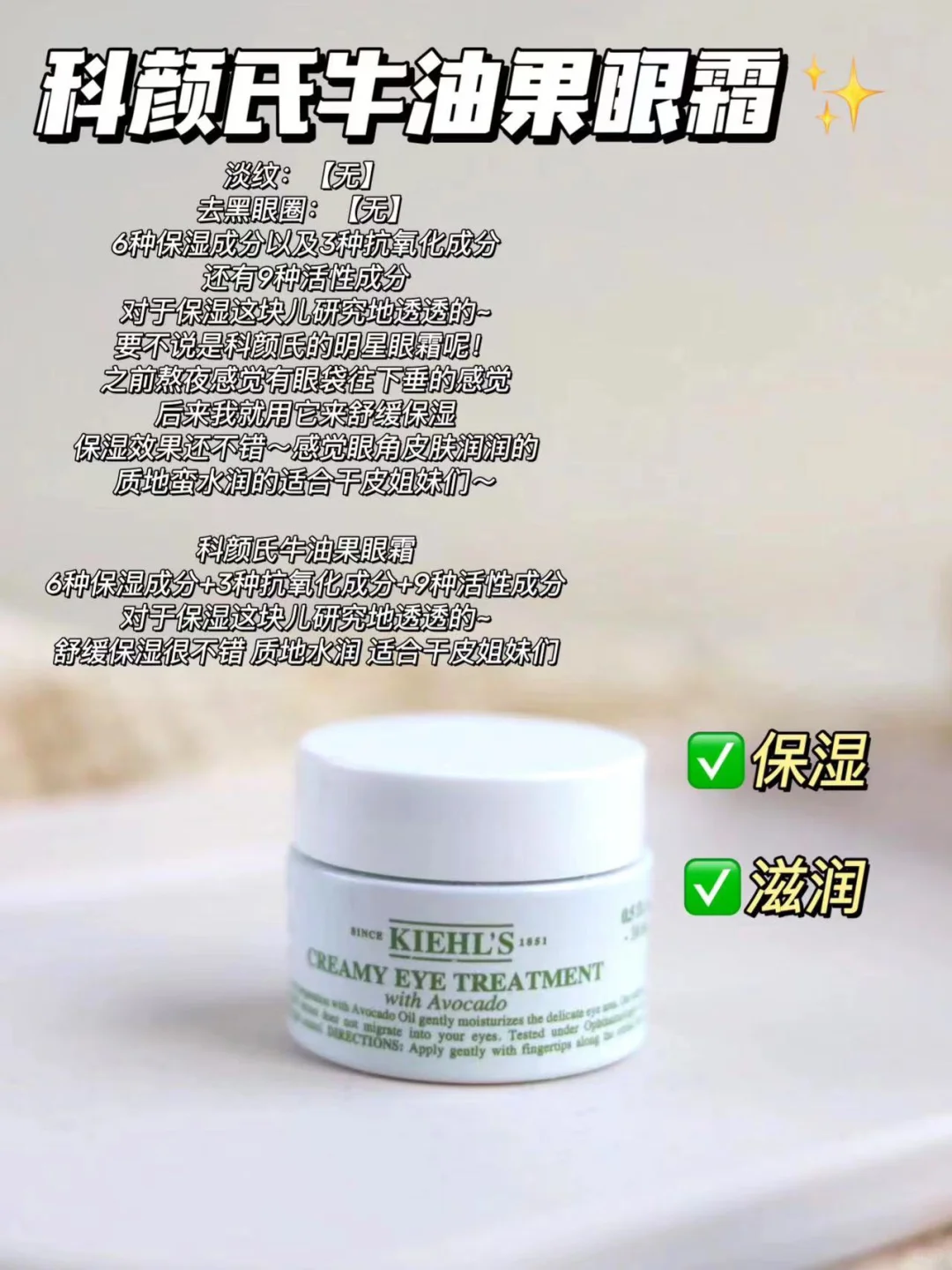 ✔️科颜氏牛油果眼霜