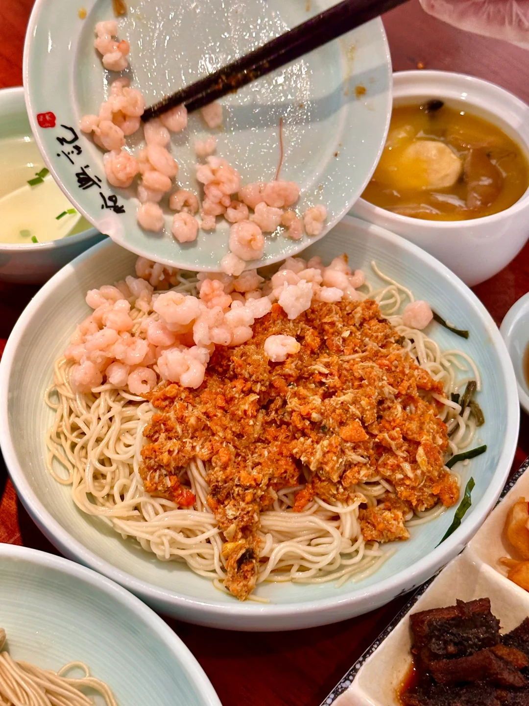吃了好几年的老字号 除了人多没有缺点!! 🍜蟹粉、 蟹柳、蟹黄…加上虾仁做浇头的蟹黄面 再淋点蟹醋真的不要太满足😭!!