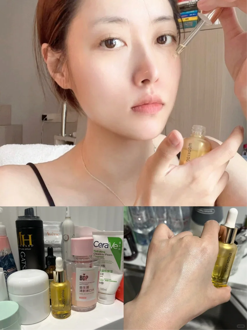 精华油这种混油皮感觉就平衡的很好 够保湿也不腻 对细纹下垂什么的尤其友好 按摩一下整张脸也很舒服.