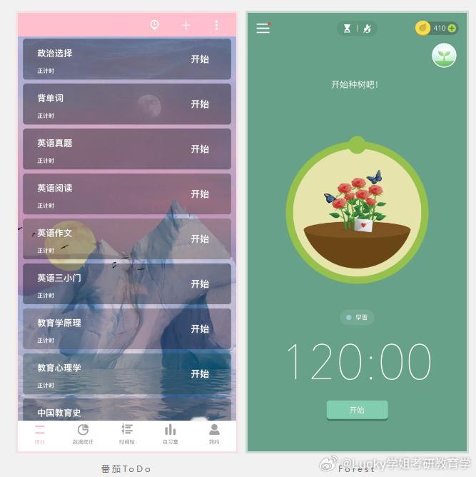 这两个软件都是专注软件,可以用来做时间管理,学习时用软件锁机,能有效提升学习时的专注度和学习效率,如果想在锁机时段玩手机,番茄To Do有几次免费的机会,而Forest种出的树将会枯死.【图4】