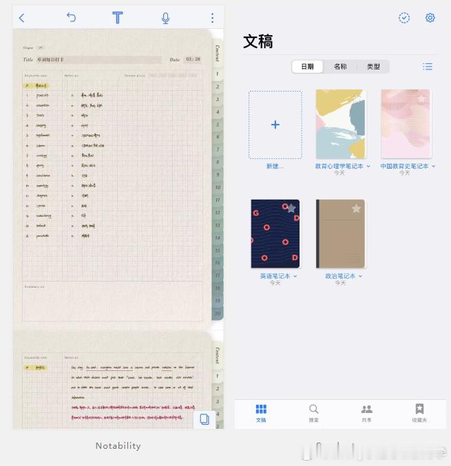 这两个软件都是非常好用笔记软件,功能上大同小异,不同的特色在于Notability带有即时录音功能,笔记可以分类整理;Goodnotes翻页查看非常方便,适合多页资料的阅读和标记。【图5】