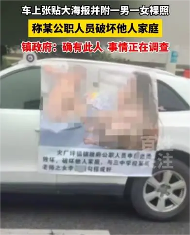 2人如果都是单身也就罢了,但奈何他们都是已婚。从网上爆出的横幅看,2人均一丝不挂,这是被人逮了现场,铁证如山。