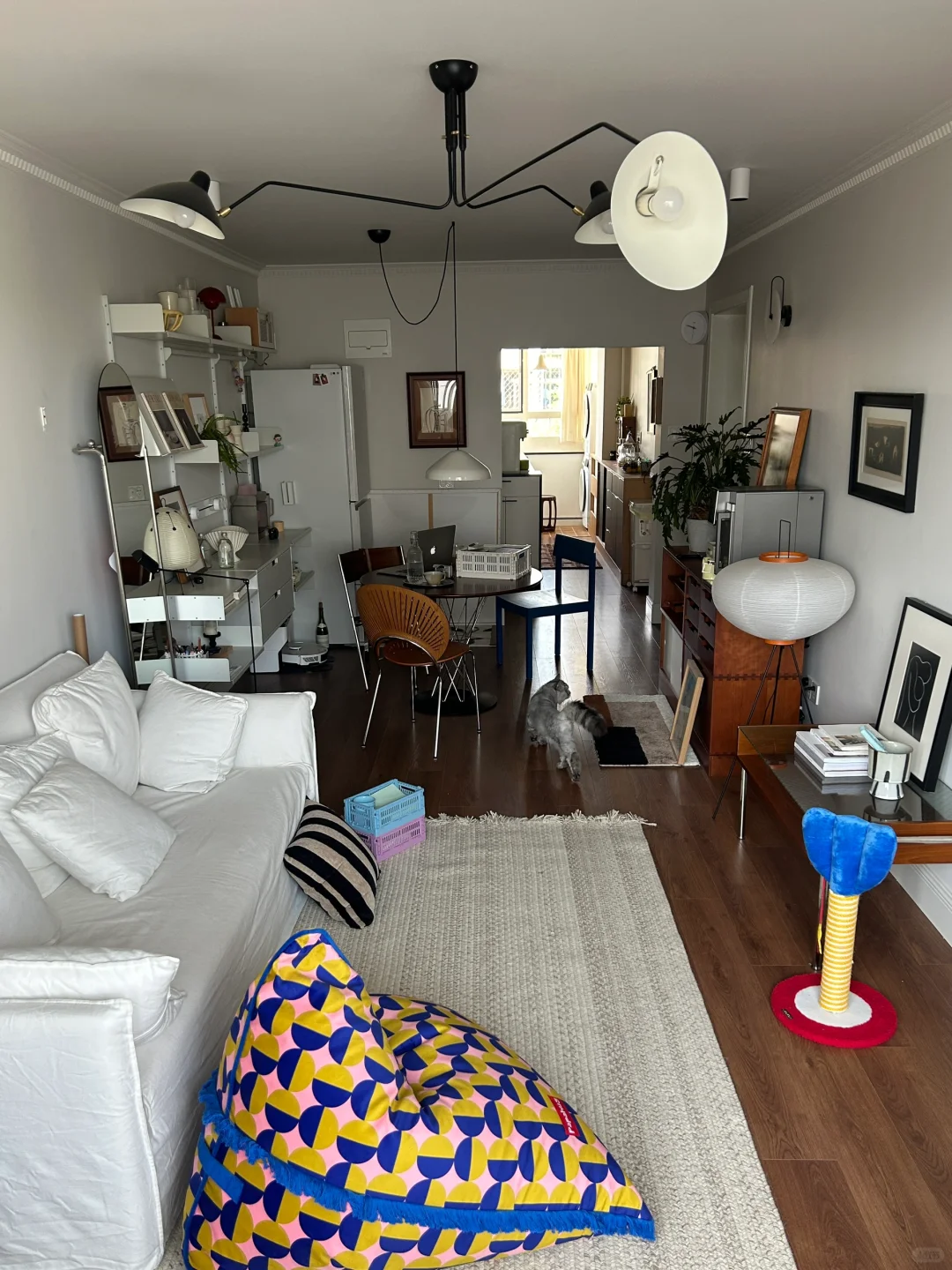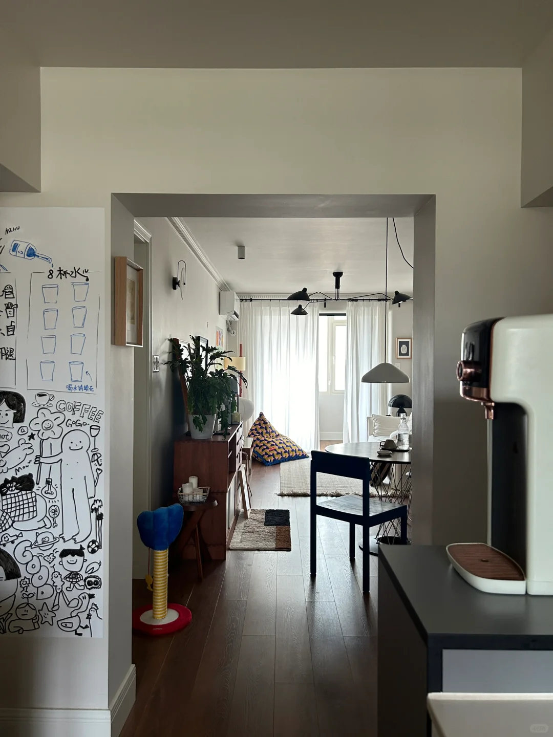 听了太多 “客厅怎么没有电视柜, 为什么铺地毯,多难打理啊 沙发还是白色🤍,一看就没有小孩 卧室连个衣柜都没有吗 阳台怎么都空着不打个柜子收纳吗浪费! 厨房这些都是什么啊,一看你就不做饭 怎么地板铺厨房了,撒水了你就哭吧” . 好像声音很多,但这是我家诶 家的使用没有标准,即使违背常规 也全凭自己的习惯和喜好 我喜欢娜来挪去,就让家的组成更灵活 . 关于我家🏡: 套内64平的小两居 自己设计搭配工长半包 还在持续折腾各种风格的软装 .