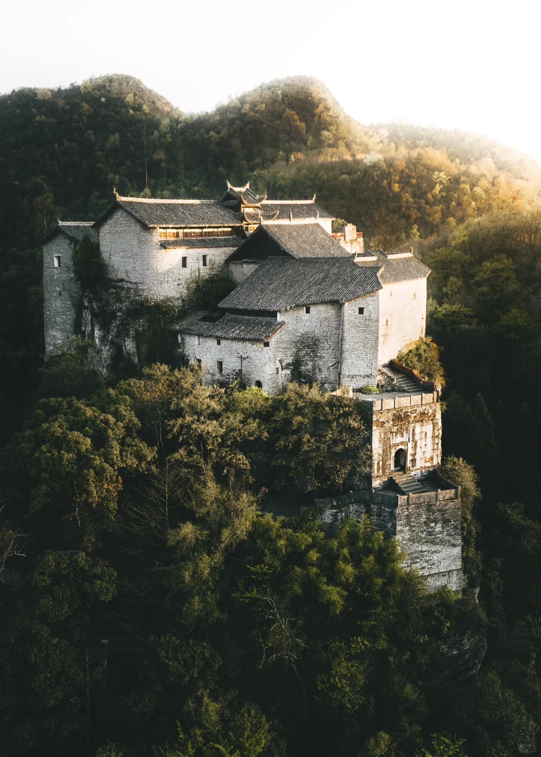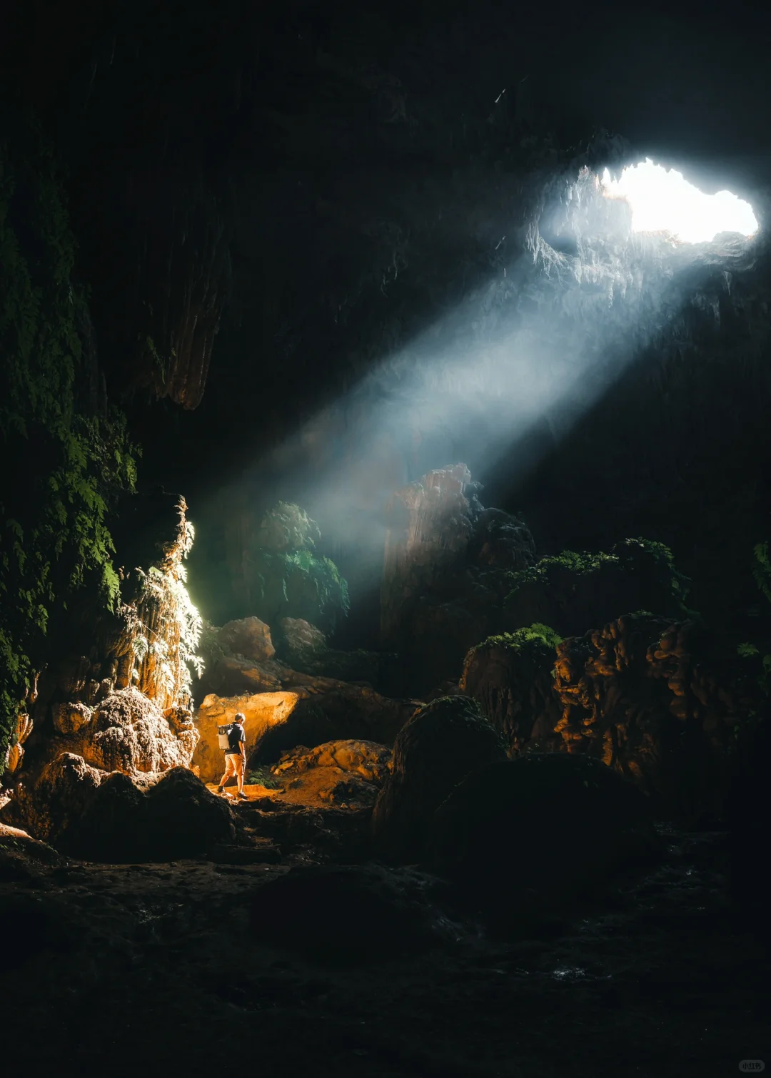 2️⃣day2:从贵阳市区出发去安顺的天龙屯堡(图5),车程一个小时不到,这个古镇最惊艳的就是天台山景点,天台山在群山中孤峰一蒂,三面为绝壁,极为险峻,寺庙与山石浑然一体,之后可以去古镇逛一逛,高大的石头寨门、整齐的石板小路都是历史的记录。逛完古镇后去莲花古洞(图6),这里这里是一个尚未开发的景点,野生洞穴,适合探险,大家去的时候注意别破坏到钟乳石。全洞有一个主洞,两个耳洞,每洞各有"天窗"一个。拍照最好是在大太阳天去,会有光束照射进洞穴里,晚上住安顺市区。