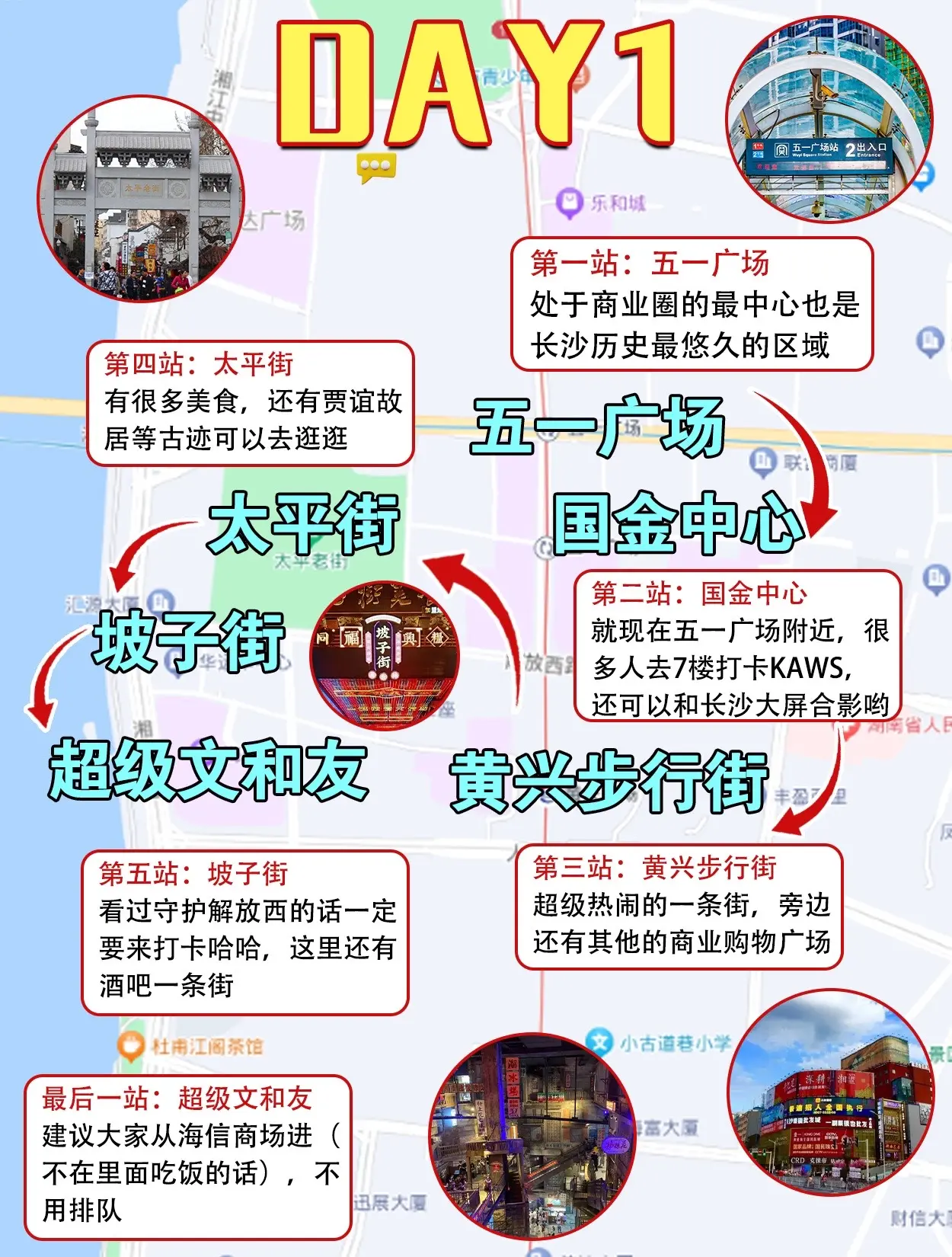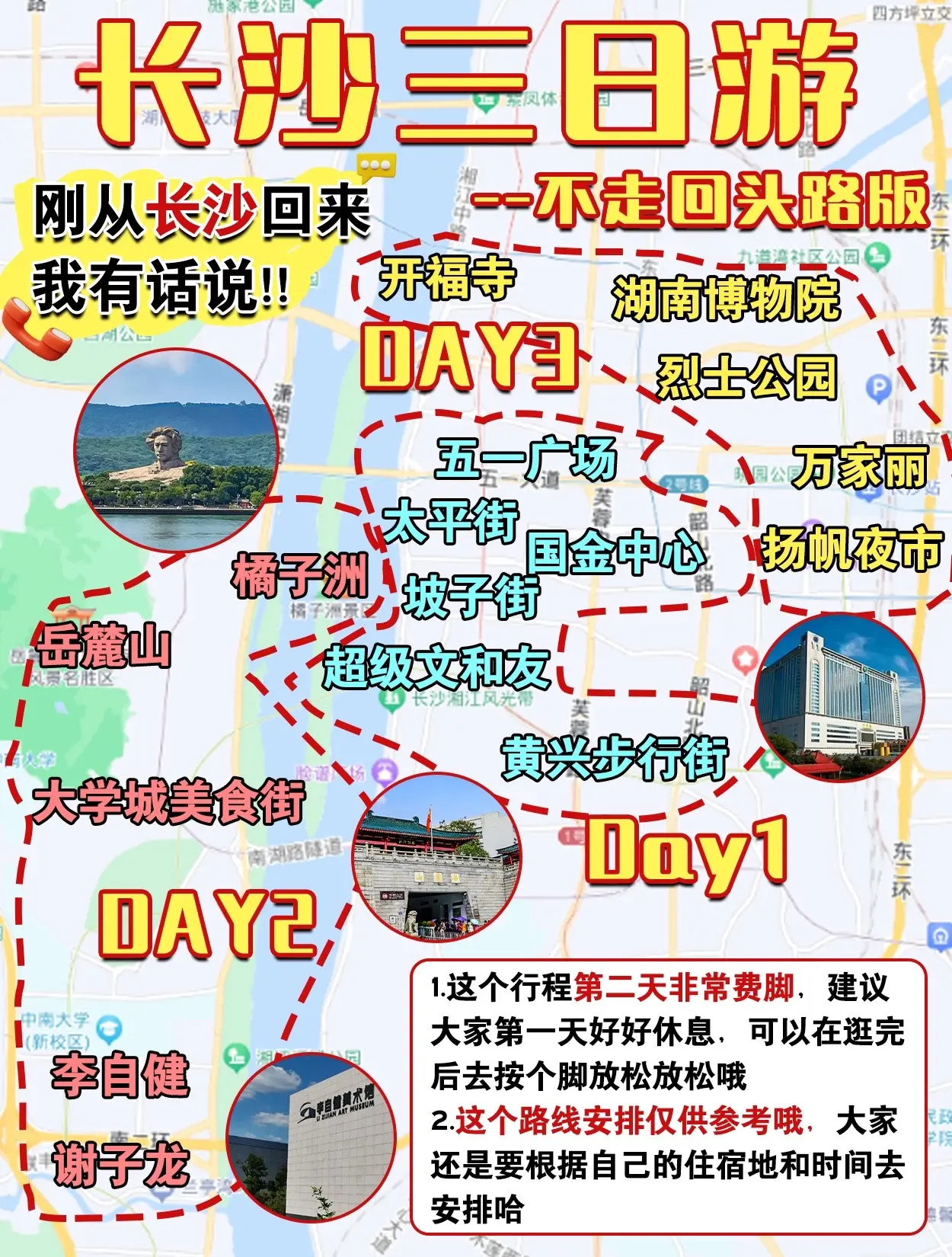 长沙旅游必玩的路线地图,可无脑中冲。