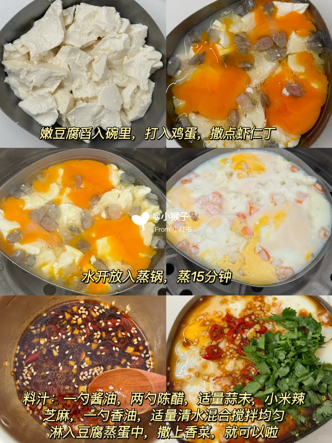 减脂晚餐就吃这个豆腐蒸蛋,好吃不胖[派对R] 还加了虾仁丁🍤,低脂高蛋白质,特别饱腹 淋上酱汁拌一拌,不要太满足!!!😭 - 料汁: 一勺酱油,两勺陈醋,适量蒜末小米辣,芝麻 淋入一勺香油,少许清水混合均匀 - 做法: 1️⃣将豆腐用勺子🥄舀入碗中,打入两颗蛋,再撒点虾仁丁 2️⃣蒸锅里水开,再放入蒸锅蒸15分钟 3️⃣蒸好后淋入料汁,撒上香菜,拌匀就可以吃啦😋 - 豆腐虾仁蒸蛋快去试一试,这个做法不要太简单[派对R] 好吃又不会胖的那种🥳🥳🥳