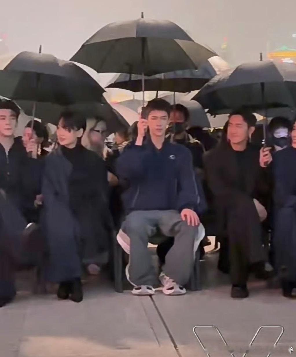 #李昀锐夹缝中打伞##李昀锐打伞像军姿# 李昀锐在上海大秀上的这一独特场景,夹缝