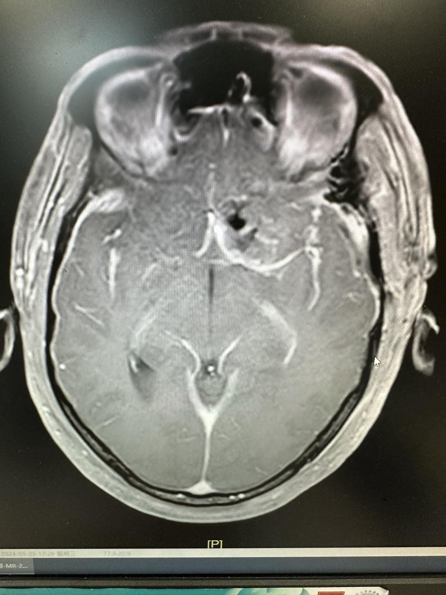 掩盖牙痛的手术。这个肿瘤,周边的重要结构实在太多了,连前交通复合体、内囊前肢、下丘脑、脑室壁、尾状核、中动脉等都一一暴露,如刀尖上行走,手术中导航加持,术中磁共振如同老师一般给你阅卷打分,没想到术中的专注还有意想不到的效果,因为做手术前牙痛,没想到都因为专注做完手术还好了点,看来没入错行,一举两得!
