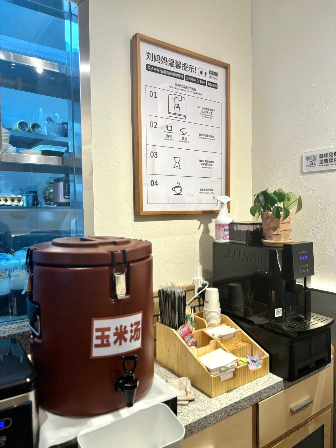 免费提供现磨咖啡,☕️咖啡和饺子的混搭还是第一次见~