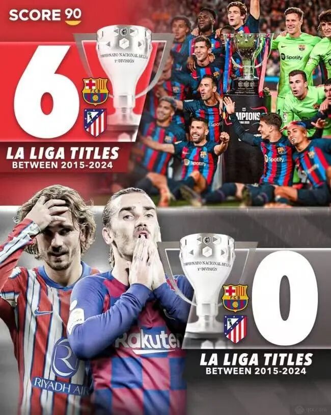然而,格列兹曼辉煌的职业生涯背后,始终有一道无法填补的遗憾——西甲冠军。据千嗨体育的统计数据显示,格列兹曼西甲共出场555次,打进204球送出98次助攻,但从未在西甲夺冠。更令人扼腕的是,他曾两度因转会而完美错过西甲冠军。