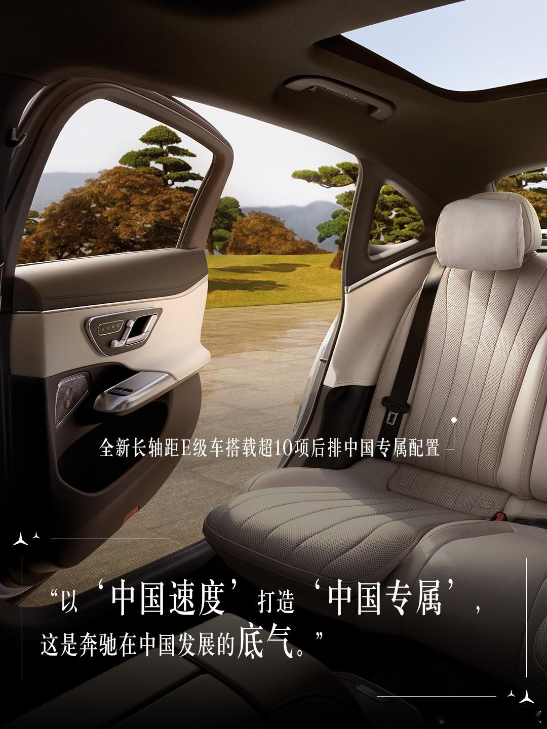 全新长轴距E级车搭载超10项后排中国专属配置,智能豪华再升级。