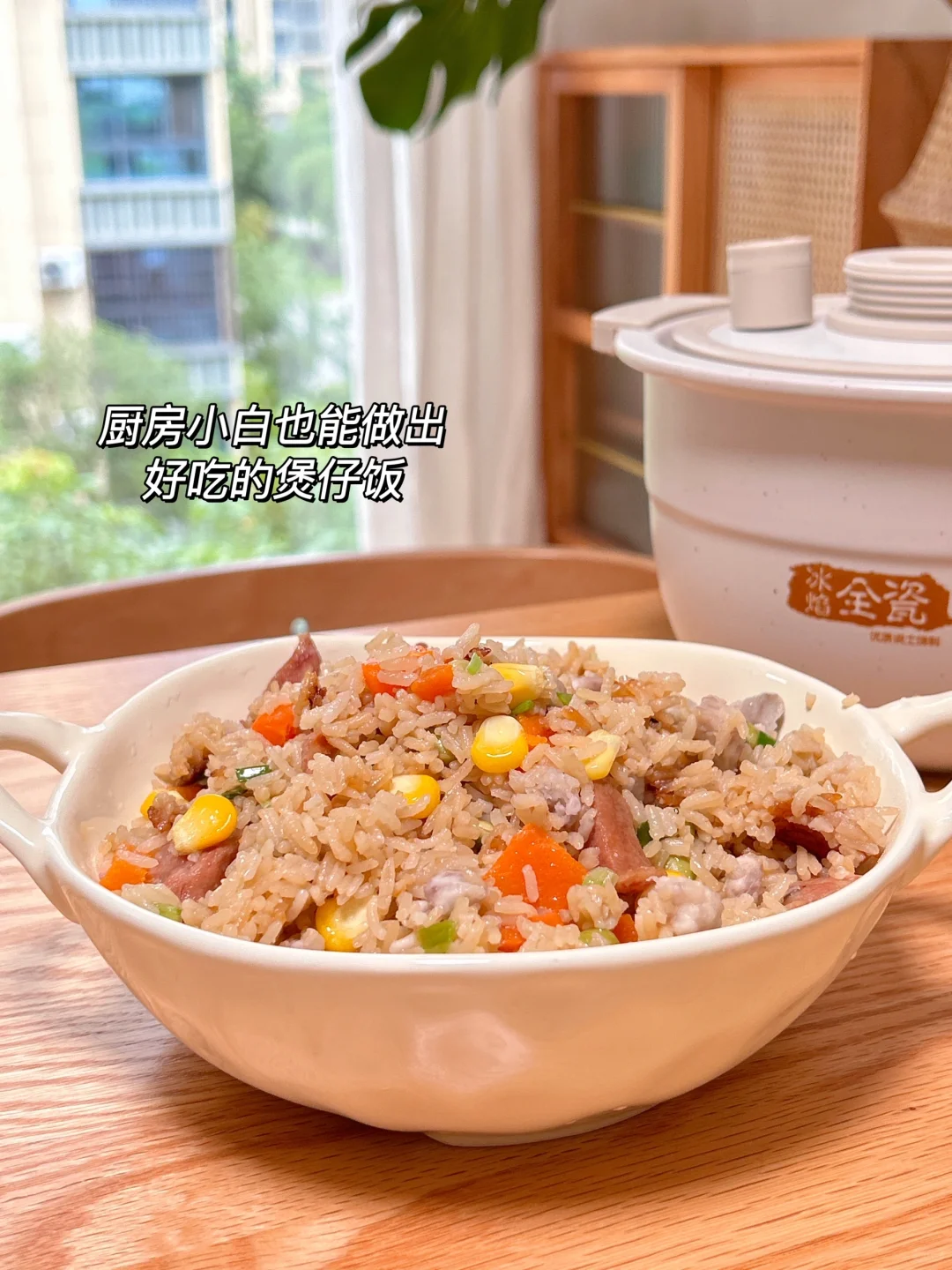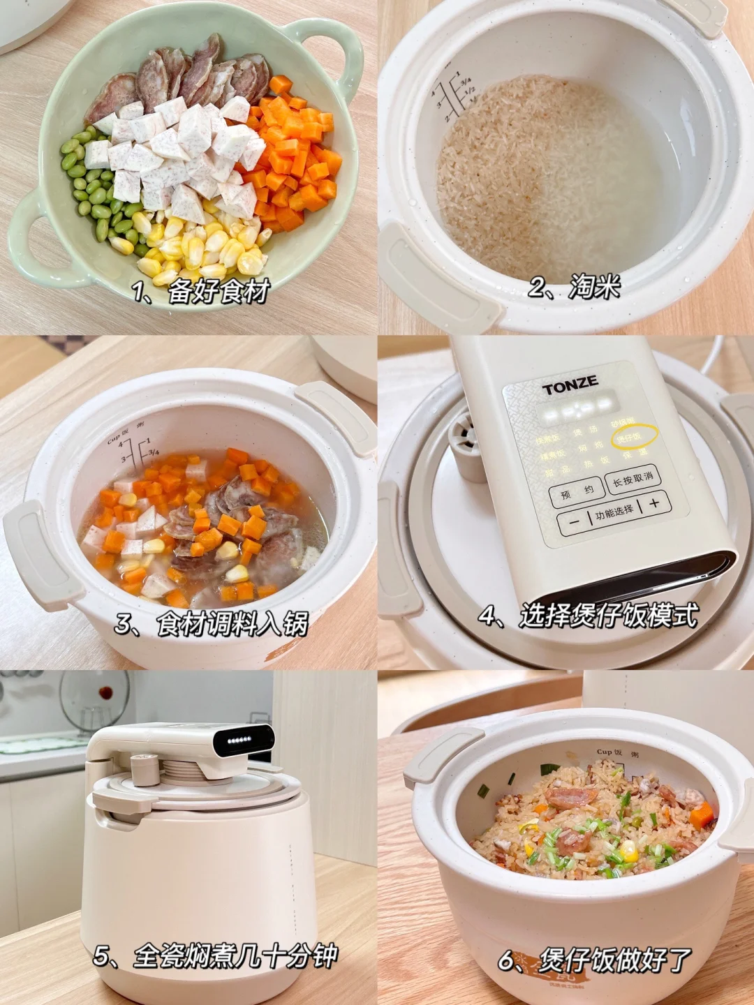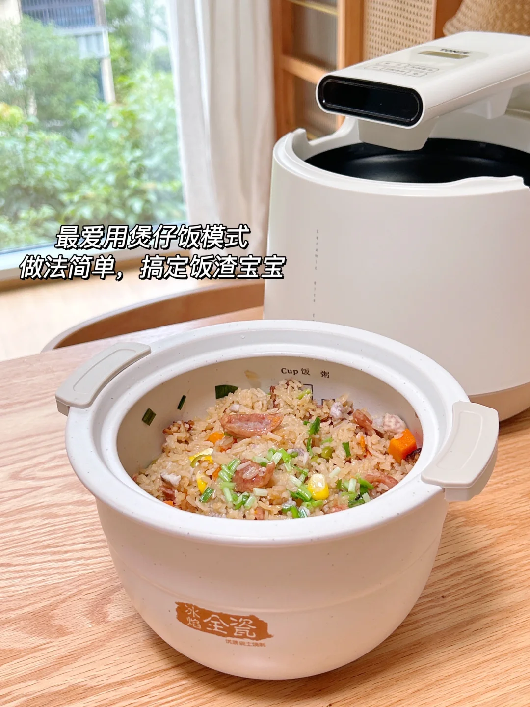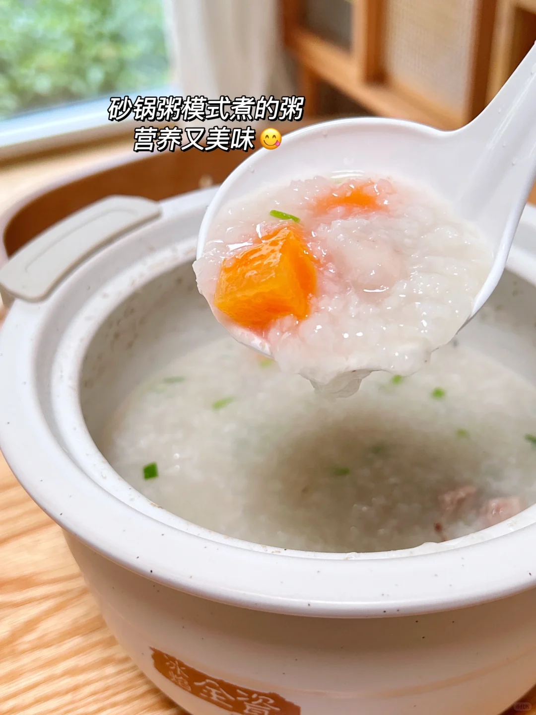 除了煮饭更香,它还能焖、炖、煲、煮,一共9种功能!我尤其爱用它的煲仔饭功能,对于我这样的厨房小白来说,巨方便!把新鲜的食材🥕放进锅里,就能焖煮出可口的美味啦~我那挑食的女儿也要炫上两碗。它的砂锅粥功能我也常用,它有旋臂臂双探温功能,煮粥都不用担心溢锅问题了!