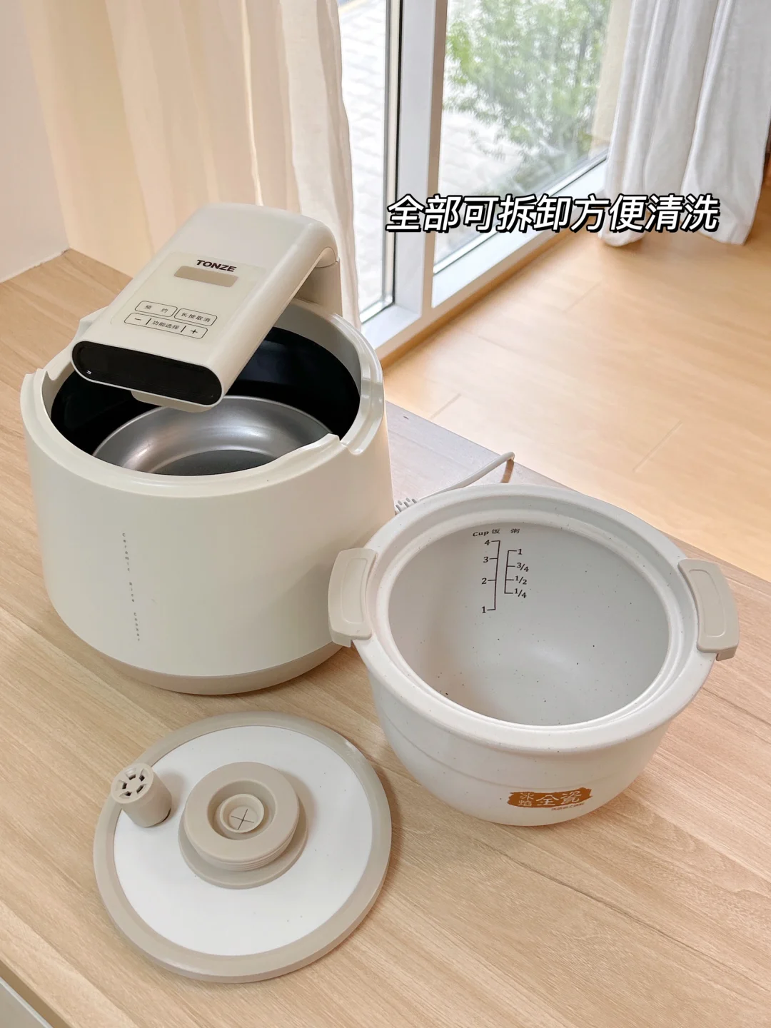 💧而且清洗起来贼方便!内胆与盖子是分开的,而且还是二级不粘锅,水冲一冲都不用泡就洗干净啦~
