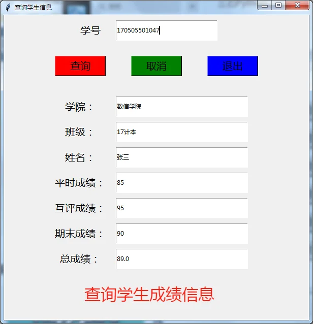 4️⃣查询学生成绩信息:直接输入学号即可查询该学生的成绩信息。