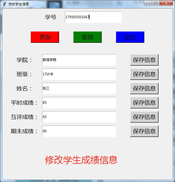 3️⃣修改学生成绩信息:先输入学号查询该学生信息,然后再修改每一项信息。