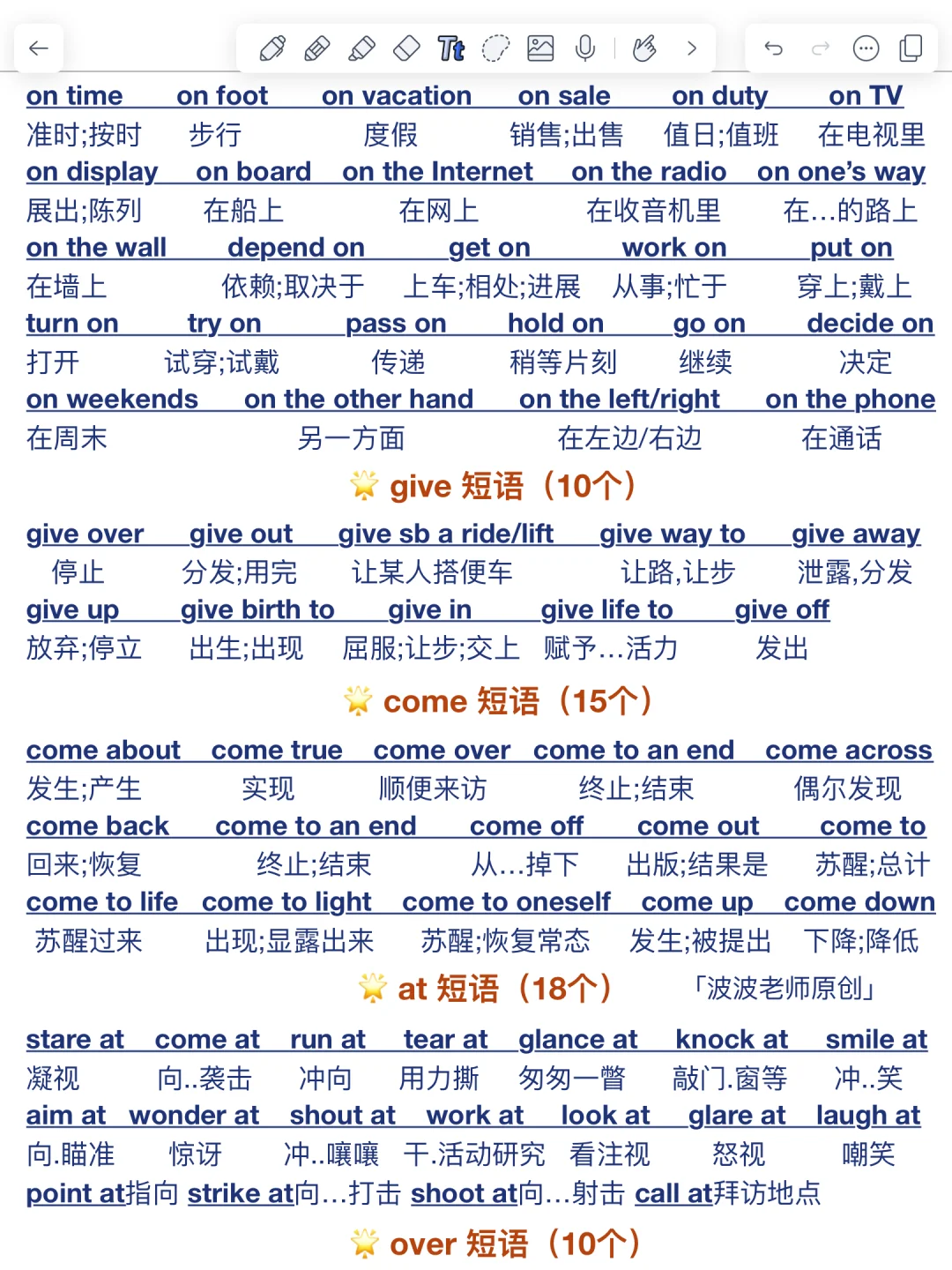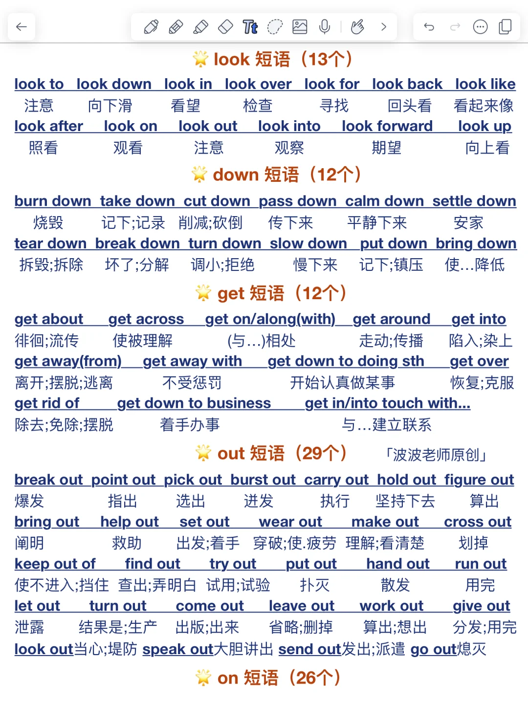add up 合计 do up 整理 pack up 装箱打包 rise up 起义 look up 抬起来 hold up 举起 take up 拿起 pick up 捡起 put up 举起;张贴 send up 使上升;发射 build up 增强 break up 分裂;打碎 bring up 抚养;教育 show up 出现;露面 hang up 挂起来;挂断电话 make up 虚构;弥补;组成 dress up 穿上盛装;打扮 fix up 修理;安排;装置 clear up 整理;收拾;放晴
