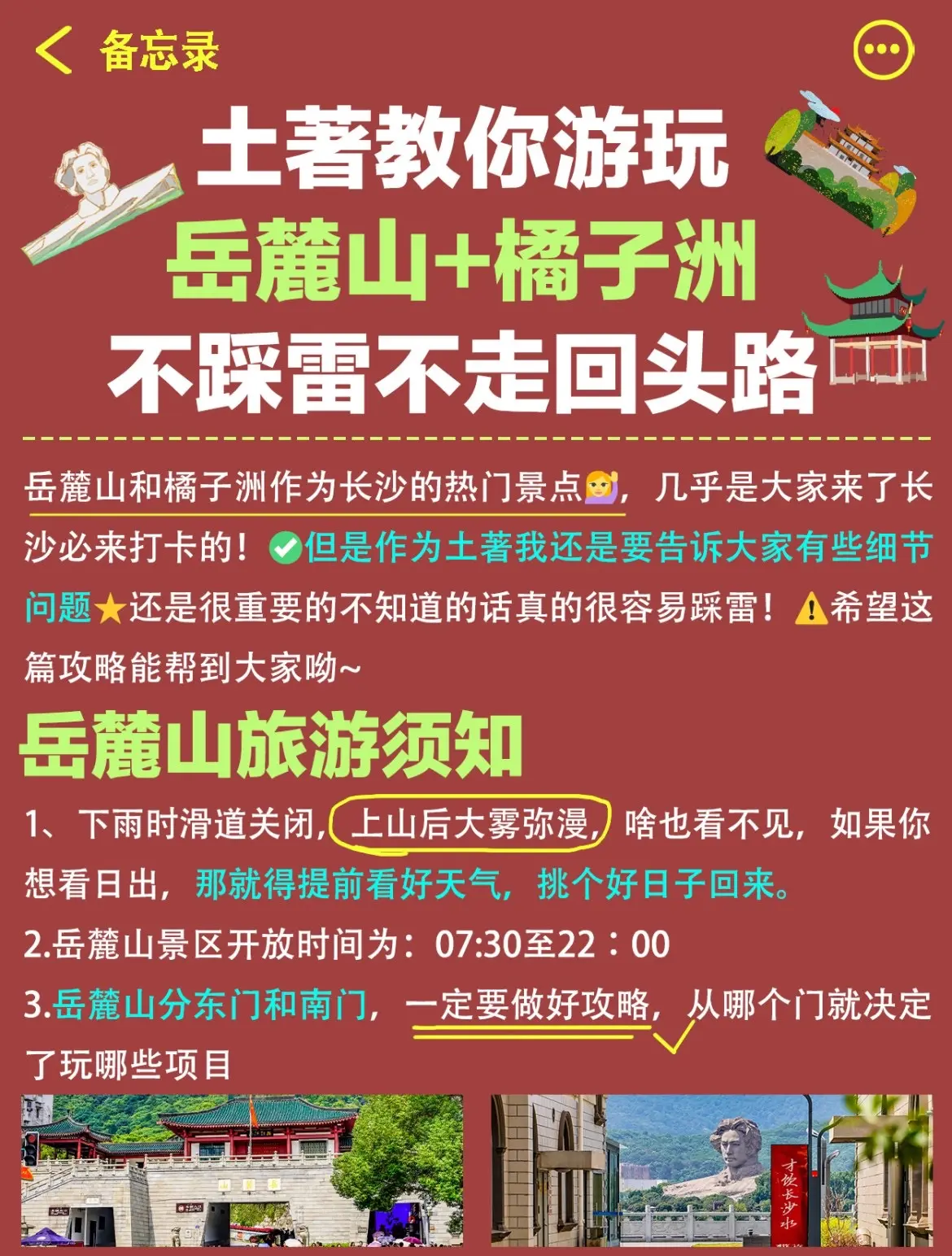 来橘子洲和岳麓山想玩好,细节真的很重要!