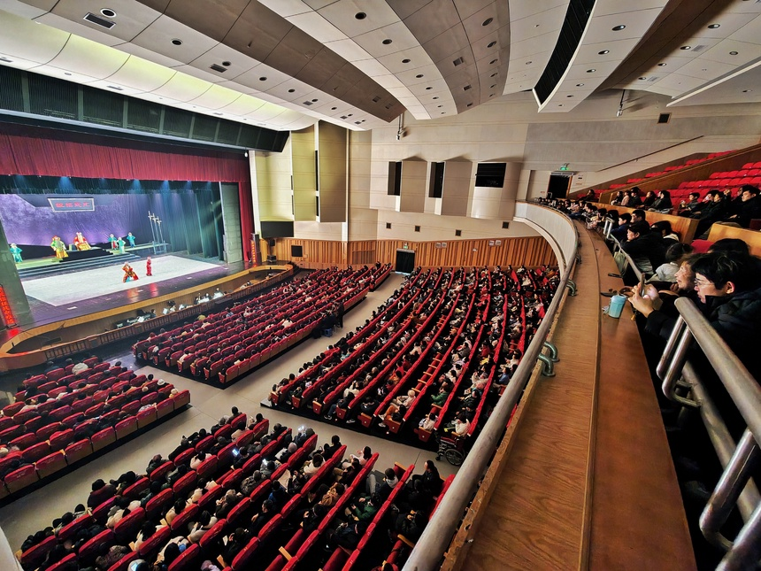 近日,浙江省杭州市萧山剧院戏味正浓。台上,铿锵的锣鼓和传统的唱腔拨动着人们心弦;台下,来自四面八方的市民围坐观演,不时地轻轻哼唱,年轻人更是时不时拿出手机记录下精彩瞬间……在市民、游客的阵阵喝彩声和掌声中,萧山绍剧艺术中心以《破阵》拉开了“宋福杭州年 戏曲闹元宵”活动的帷幕。此次活动共持续6天6夜,先后送上绍剧《龙虎斗》、莲花落《寿堂对课》、越剧《五女拜寿》等优秀剧目,为游客和市民奉上一桌丰盛的新春文化大餐。