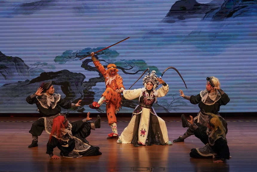 绍剧演出的剧目承载着当地的风土人情、方言声腔、艺术审美,保存和发展包括民间戏曲在内的优秀传统文化,其作用不可小觑。早在2014年,萧山便与浙江艺术职业学院合作,开设全日制绍剧专业班,首批28名“00后”学员在政府每年百万资金支持下,开启了6年系统学艺生涯。从基础的压腿、吊嗓,到登上联合国文化展演、亚残运会开幕式等国际舞台,这群年轻人用日复一日的坚持,诠释了“台上一分钟,台下十年功”的真谛。2020年,他们以“青春版”《孙悟空三打白骨精》毕业汇演惊艳亮相,剧中孙悟空扮演者沈力立等学员的扎实功底,让外界清晰看到绍剧传承的青年力量。如今,这批学员已成长为绍剧艺术中心的中流砥柱,以细腻唱腔连接经典与当代,践行着“以青年传承非遗,以非遗滋养青年”的双向奔赴。