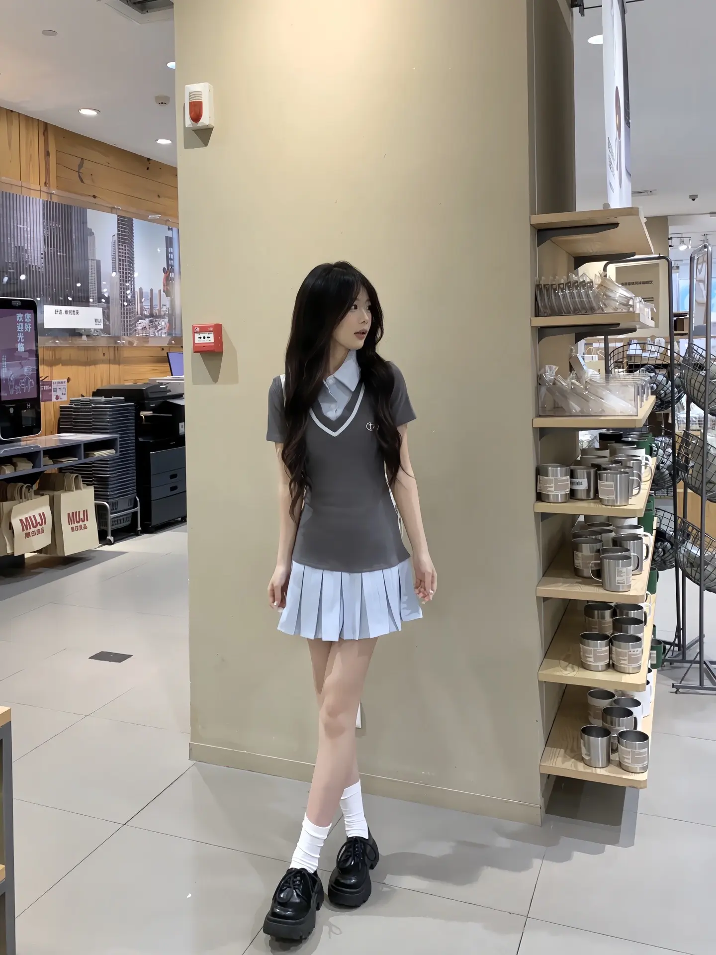 小甜豆品味真不错,长靴配连衣裙绝绝子!