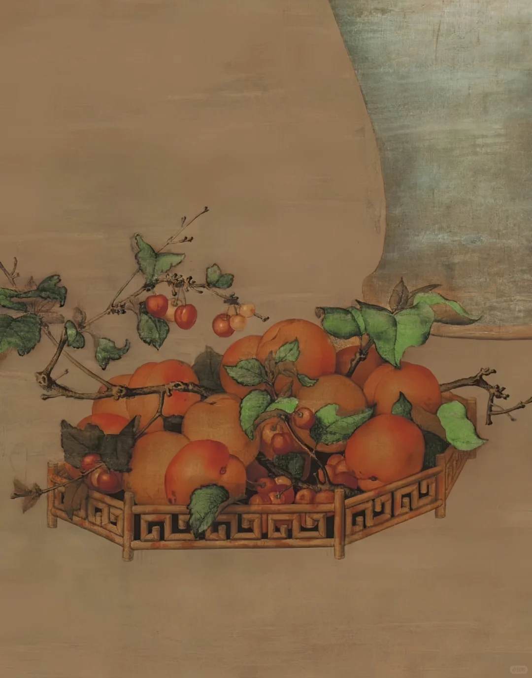 《午瑞图》是清代宫廷画家郎世宁创作的一幅绢本设色画,现收藏于北京故宫博物院。 · 该画作是一幅近似于欧洲静物画的作品,《午瑞图》中部画有一青灰色瓷瓶,瓶中插满菖蒲、艾草和盛开的石榴花、蜀葵花等各种花草,托盘里盛有应季的李子和樱桃。灰色瓷瓶颜色有些月白色泽,淡淡的青色,跟鲜艳的花朵形成对比。画面右侧则散落了几颗粽子。就构图而言,该画物品聚散有致,呈正三角形布局,给人的视觉以稳定感。 · 该画中的粽子、蒲草等物暗示此画是为中国的传统节日——端午节而绘制的。