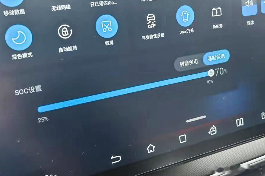 #驻车发电与强制保电哪个更好# 小黑前两天试驾了一款插混车,用了下驻车发电功能。怎么说呢,从充电效率上看有点儿低。如果想把动力电池里的电保留到目的地再用,比如露营时对外放电,那么,在路上开车时用强制保电功能岂不是更香?