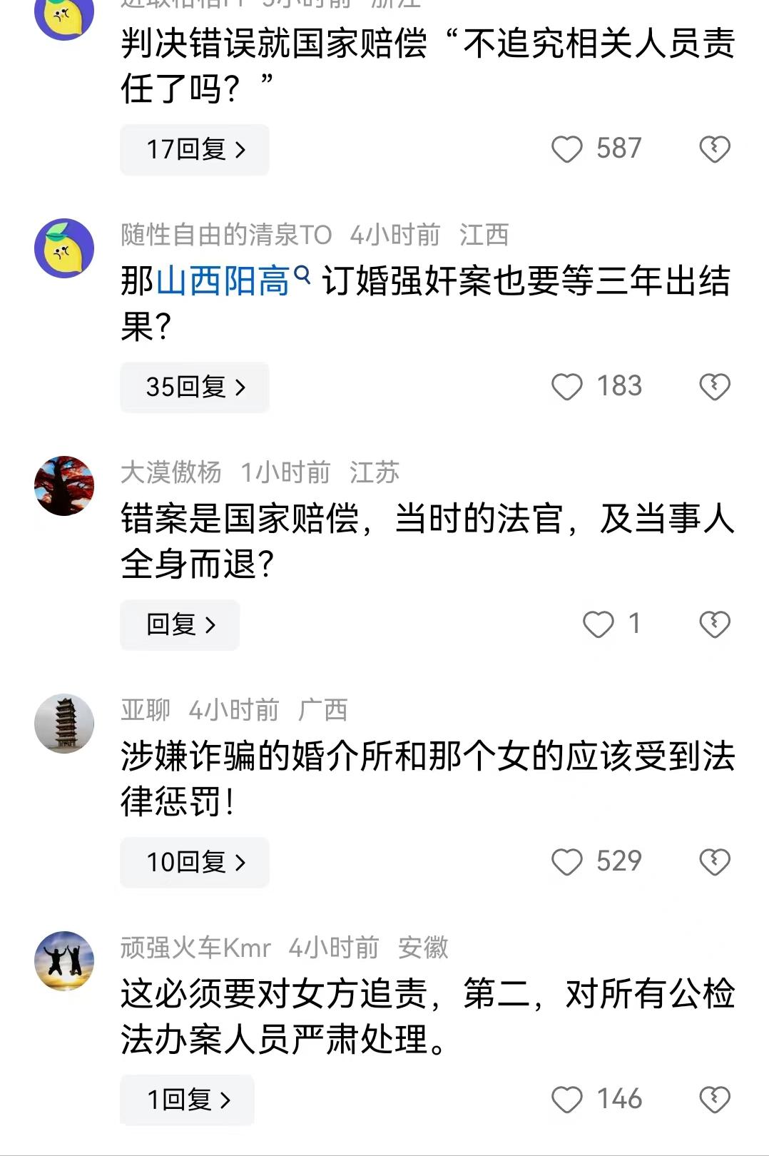 改判无罪,沉冤得雪,获57万国家赔偿!河北唐山,一男子2018年在相亲当天与女生发生关系,事后被女方控告以强奸获刑三年,他宁愿不减刑也不肯认罪,如今终于洗清冤 【来源:澎湃新闻2024.3.30“相亲强奸案”男子被改判无罪后,获57万国赔,唐山中院道歉】 来自河北唐山的小邸是一名普通上班族,朝九晚五的生活仿佛永不停歇的轮回。 但他已经三十而立,生活除了工作还应该有着更多的色彩。 但现实总是残酷的。在爱情的世界里,小邸似乎一直被遗忘在那个角落。 随着时间的流逝,父母的担忧与日俱增。 每当周末回家看到父母脸上的忧愁,他的心便不禁沉了下来。 亲戚朋友开始热心为他介绍对象,希望可以帮他终结单身的状态。最初他还尝试着去见几个,但后来觉得这样过于频繁而且尴尬,便开始找借口推脱。 直到某个周末,在家人苦口婆心的劝说下,小邸勉强答应参加一个相亲活动。 那晚跟他相亲的女生面相温和,两人甚至交谈甚欢,就像是久别重逢的老朋友。 吃完饭后,应女生的要求,小邸又陪着她散步消食。 就在这样的情况下,孤男寡女又彼此心生好感,于是乎两人在自愿的情况下发生了不可描述的关系。 然而,正当小邸以为会有个好结果时,女生却以强奸为要挟,要求小邸赔偿两万元的经济补偿。 小邸对此自然是不认同,他认为你情我愿,自己没必要赔偿。 然而当所有协商无果后,女孩愤然离去,并在几天后报了警。 面对警方的调查和法律的问题,小邸始终坚称自己的清白,他认为自己和女孩的交往完全属于自愿,没有任何强迫的行为。 可是,事情并没有朝着他所期望的方向发展。 几轮调查取证之后,小邸被警方采取了刑事强制措施。 经过漫长的等待,最终法院作出了判决——他因强奸罪被判处有期徒刑三年。 当那冰冷的判决书递到小邸手上时,仿佛一道晴天霹雳击中了他。 小邸无法接受这样的判决,心中充满不甘。 他提起上诉,希望能为自己的清白正名,然而二审的结果依旧冷酷无情,驳回了他的诉求。 在监狱的日子里,尽管面对减刑的诱惑,小邸始终坚持自己是清白的,不肯低头。 家人是他的力量源泉,不断为他收集资料,寻找一线生机。 就在他和家人的不懈努力下,终于在2023年的金秋十月迎来了曙光。 法院重新审理了他的案件,改判其为无罪。 紧接着,在2024年,国家给予了57万余元的赔偿金,并且有人亲自登门向他道歉。 长达六年的漫长申诉之路,终于画上了句点。 这起备受瞩目的"相亲强奸案"引发了公众的热烈讨论。 许多人指出,背后的婚介所可能在其中扮演了不光彩的角色。 虽然小邸最终重获自由,但失去的三年时光却是金钱难以衡量的代价。 每个人的一生都应当受到尊重和保护,法律的威严不在于对犯罪的惩罚,更在于对社会正义的捍卫,保障每一位公民不受无端的伤害和诬陷。#社会#