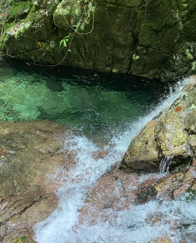 首图距离山脚十几分钟路程,面积比图片大,应该有点深,我不会水没下去过,而且水超级冰,体质不好宝宝注意别着凉。