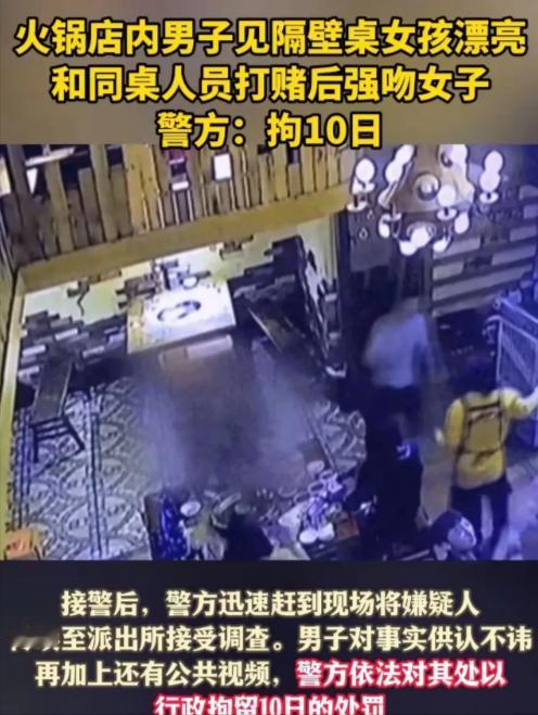 “色男他闻着味儿就过来了...”云南,小伙为在朋友面前装X,打赌说自己敢强吻隔壁桌的美女!朋友起哄之下,男子竟然真的亲了上去!结局却悲催了... 【来源:光明网2024-06-10—— 男子火锅店内强吻陌生女子,结局舒适了……】 最近,云南曲靖一起男子酒后失德的事件在网上闹得沸沸扬扬,引发热烈讨论。 一切要从那个不平凡的夜晚说起。 小张(化)和几个朋友在一家火锅店里畅饮高歌,气氛热烈非凡。 就在这时,一个漂亮抓人眼球的面孔吸引了小张的注意。 在酒精的作用下,他产生了一个古怪的念头:自己敢不敢上前,在那名陌生女子脸颊上亲一口? 起初,朋友们以为他只是开了个无伤大雅的玩笑。 谁知小张却视之为挑战,一意孤行地付诸了实践。 他悄悄溜到女生身边,趁其不备,霍然在她脸上亲了一口! 这出人意料的一幕顿时让现场气氛一凝,女子惊怔无措,周围的人则目瞪口呆。 小张对质疑者竟然理直气壮地回应:那不过是个玩笑而已。显然,他并未意识到自己的鲁莽行为已经触犯了法律和道德底线。 事后,受害女子报警,警方通过调查确认了事实的经过。 法网恢恢,小张难逃法律的制裁,遭到了行政拘留10天的处罚。 虽然只是轻徽惩罚,却给他人生留下了一个昂贵的教训。 在这起事件中,小张之所以会做出如此不当行为,固然与酒后失常有关,但更反映出部分年轻人法制观念淡薄、社会责任感缺失的问题。 在他们眼里,越是"酷"、越是"另类",似乎就越能体现个人勇气和魄力。 可是,这样放纵肆意、不计后果的做法,往往会伤害他人,也会给自己带来严重不利影响。 每个人都应该明白,我们生活在一个有规则、有秩序的社会,谨守社交礼仪、遵循法律法规是基本的公民素养。 尊重他人,关爱他人,这不仅是道德的要求,更是维系社会和谐稳定的根本。 一味追求刺激,肆意妄为,终将给个人和他人带来痛苦和伤害。 在曲靖事件曝光后,社会各界纷纷谴责了小张的不当行为,呼吁加强法治教育。 作为文明社会的一员,我们有责任和义务恪守基本的道德操守,用自身的行为为和谐社会贡献一份力量。 生活处处有缝隙,但我们应当用善意去修补裂缝,而不是肆意在缝隙中制造伤害。 无论处于何种场合,我们都要保持理性头脑,遵循社会公德,尊重每一个人的权利。 只有如此,我们才能创造一个更加文明有序、充满正能量的生活环境。 人生短暂而又宝贵,我们更应该用智慧与善意去温暖这个世界。 让我们共同努力,用实际行动维护社会秩序,为构建一个美好、和谐的生活环境而贡献自己的一份力量。#社会#