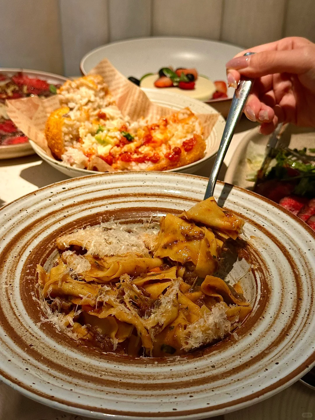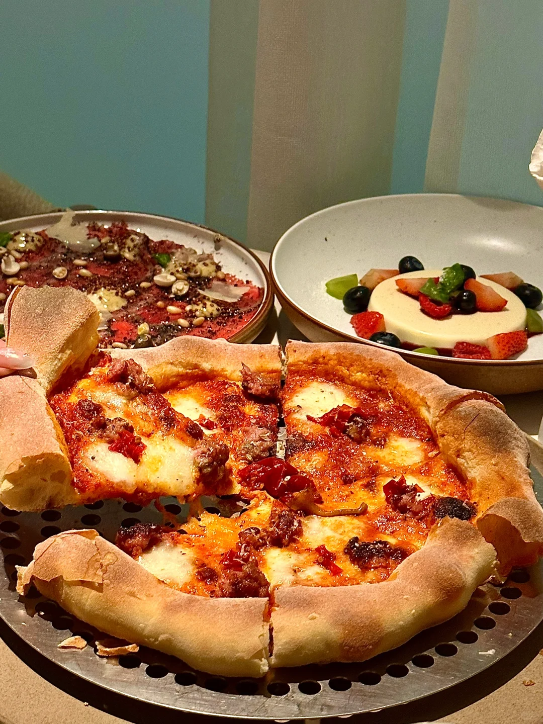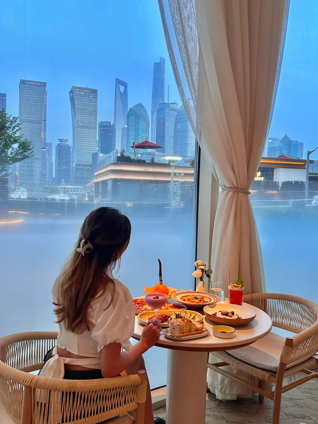 北外滩黄浦江边!!环境美到不行! 望出去就是魔都三件套和东方明珠! 披萨、松露生牛肉片…都好好吃
