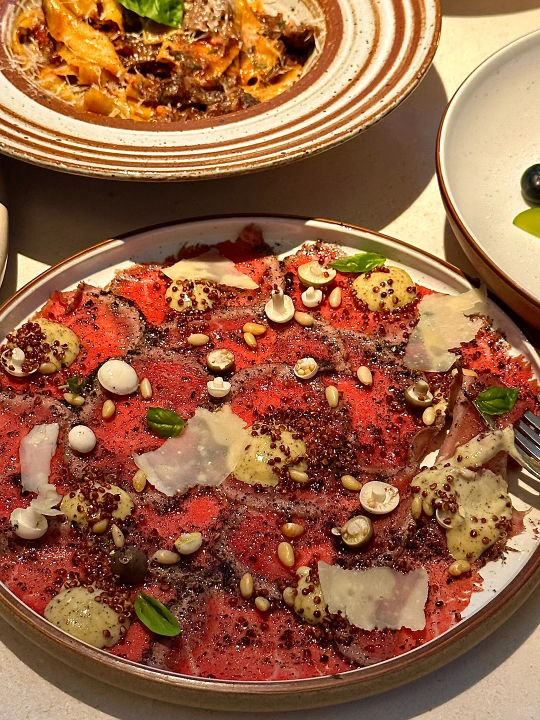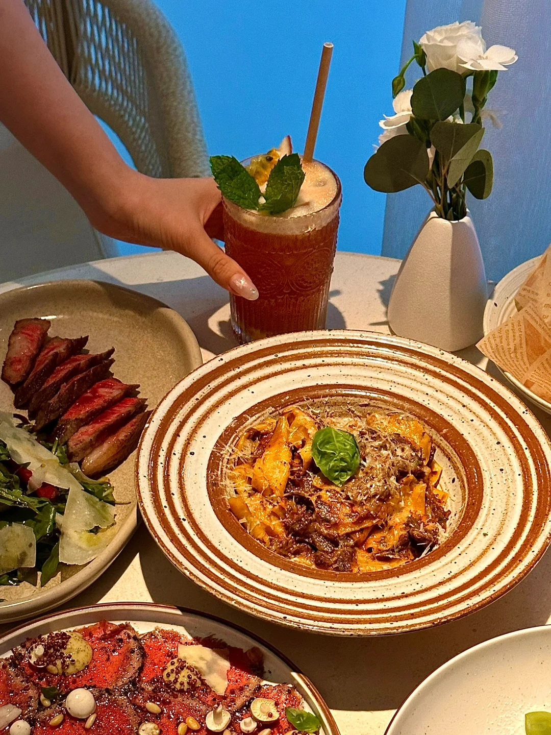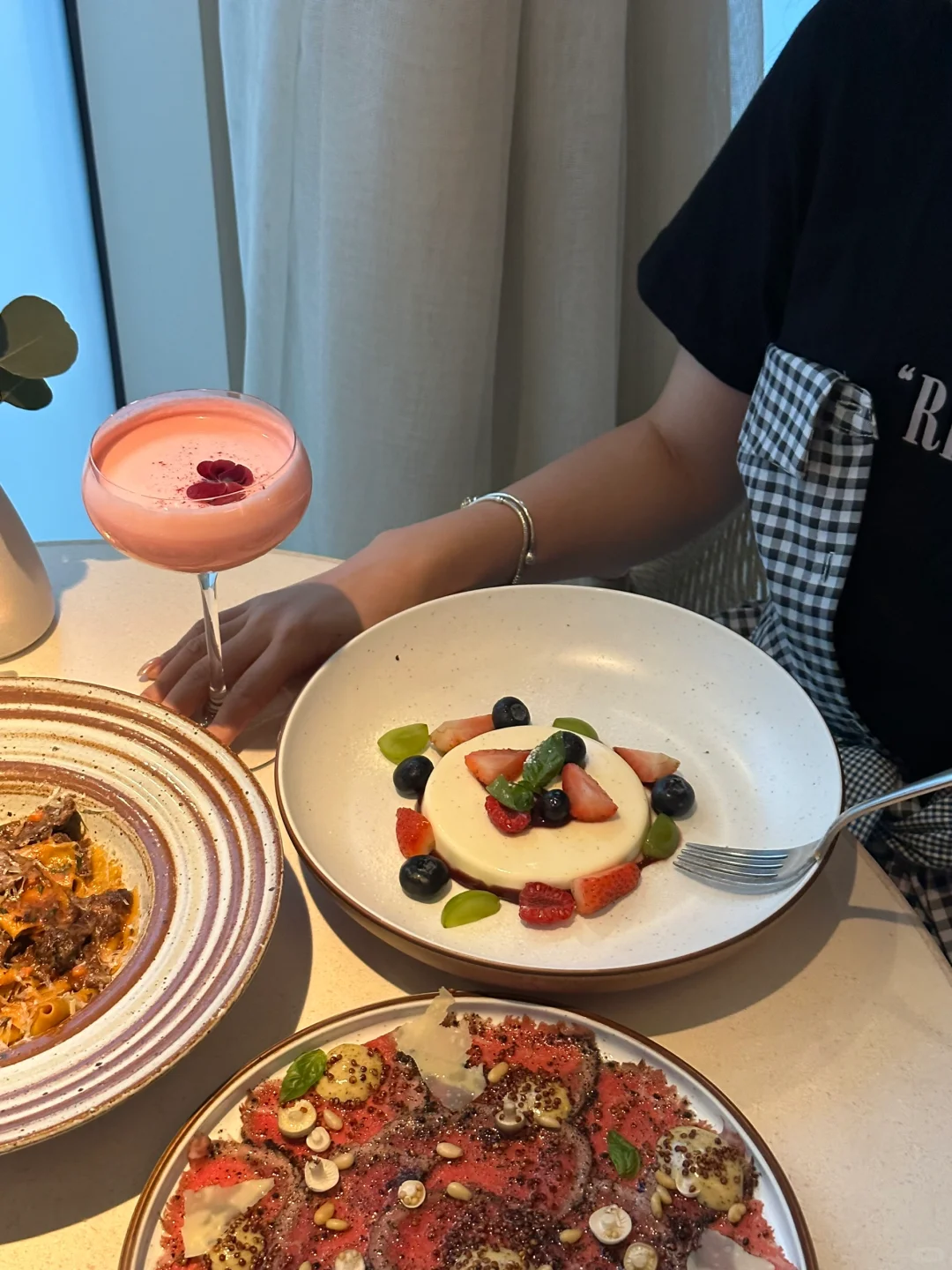 北外滩黄浦江边!!环境美到不行! 望出去就是魔都三件套和东方明珠! 披萨、松露生牛肉片…都好好吃