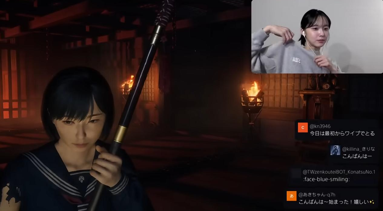 实况中段的战斗环节堪称“高能与高能的碰撞”。加藤小夏操控角色遭遇了名为“祓除形代”的强敌,同时被臃肿的异形怪物包围,猎奇的怪物设计与紧凑的战斗节奏让她多次惊呼,甚至一度想要移开视线。不过在粉丝的实时声援下,她最终咬牙完成高难度混战,展现出与“水管战神”深水雏子相符的韧性——这一称号也源于玩家对她在游戏中挥舞铁管战斗的经典印象。