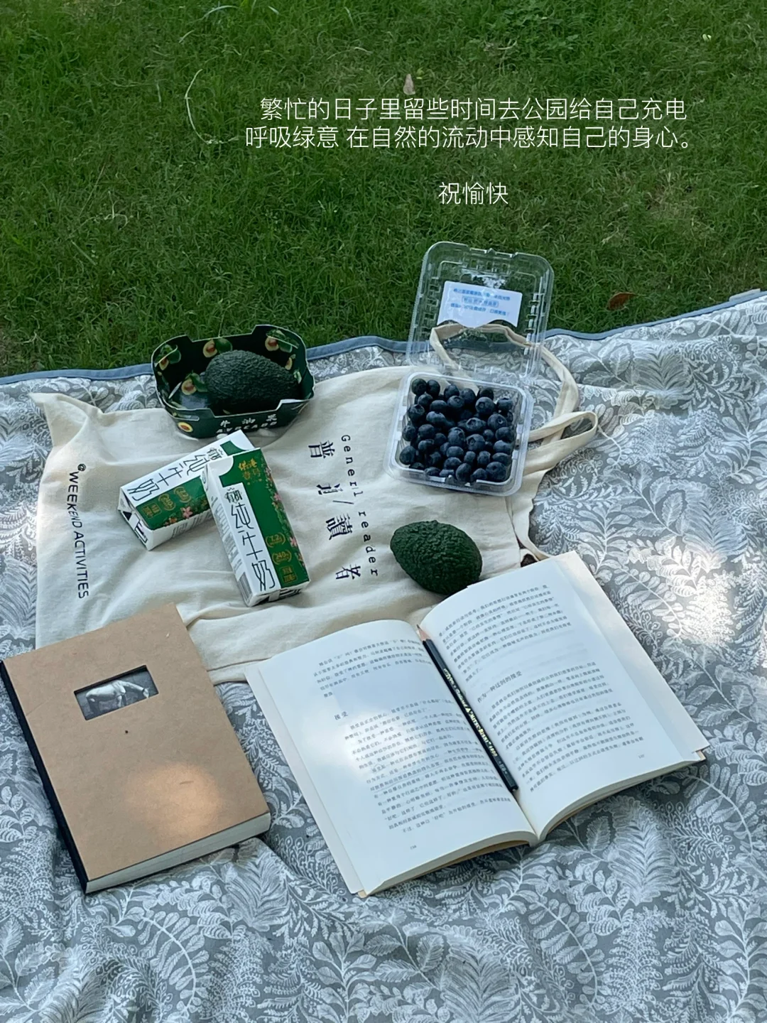 明媚的阳光和生机勃勃的绿树相映成趣,苍绿铺满了整个公园。带上喜欢的水果、牛奶与书籍,度过没有工作、消息督促的早晨。