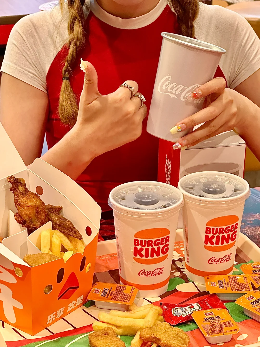 啊啊啊啊汉堡王x可口可乐梦幻联动了!! 点四拼鸡盒无糖可口可乐周边餐🉐️变色杯+3张无糖可口可乐的🎫!!没啥人知道快去!! 杯子倒冰水就可以从粉色渐变成红色!! 炒鸡酷炫有没有😎!! - 套餐性价比蛮高的🥳 鸡盒内炸物8选4(可重复选)每种都很好吃!! 霸王鸡条又香又辣,吃起来嘎嘎过瘾~ 招牌薯霸王🍟外酥内脆的很上头!! 还有王道椒香鸡腿、川蜀鸡翅... 前者肉嫩椒香,后者咸香酥脆 搭配的无糖可口可乐也很解腻!! 劲爽又不会有负担!!美美下午茶拿捏了🥰