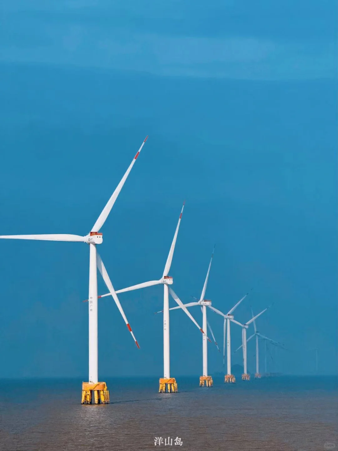 ▪️【海上发电风车】向海边眺望,巨大的风叶在微风中旋转,这里是亚洲首座海上风电场,拥有34座海上风电机🪁