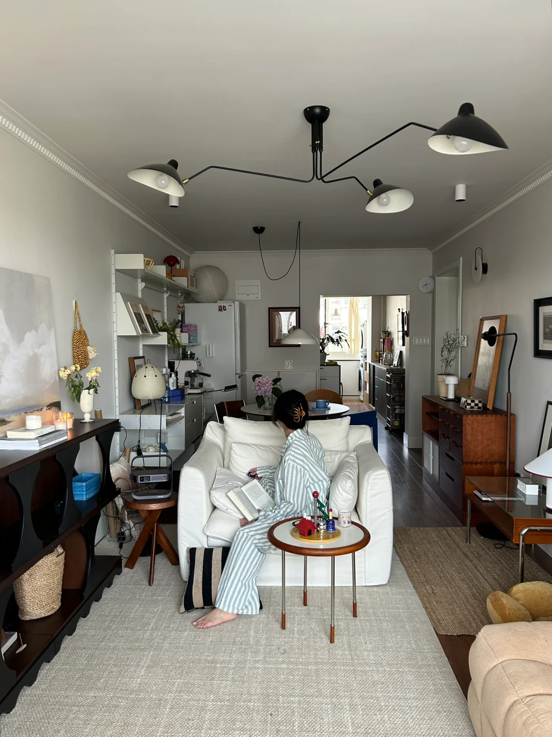 自封的哈哈哈哈哈哈哈哈哈 这几天安了幕布 把单人沙发挪了一个方向 客餐厅虽然还是一体 但有了微妙的分隔 没有了传统的招待空间 有了属于自己的看影位置 圆形的餐桌也中和了长厅的硬朗 做杯咖啡,吃一块甜品 研究一下近期新购入的物件 看一个喜欢的剧 吹着空调 外面38度的气温,没有丝毫影响 夏日宅家的快乐慢慢生长 -