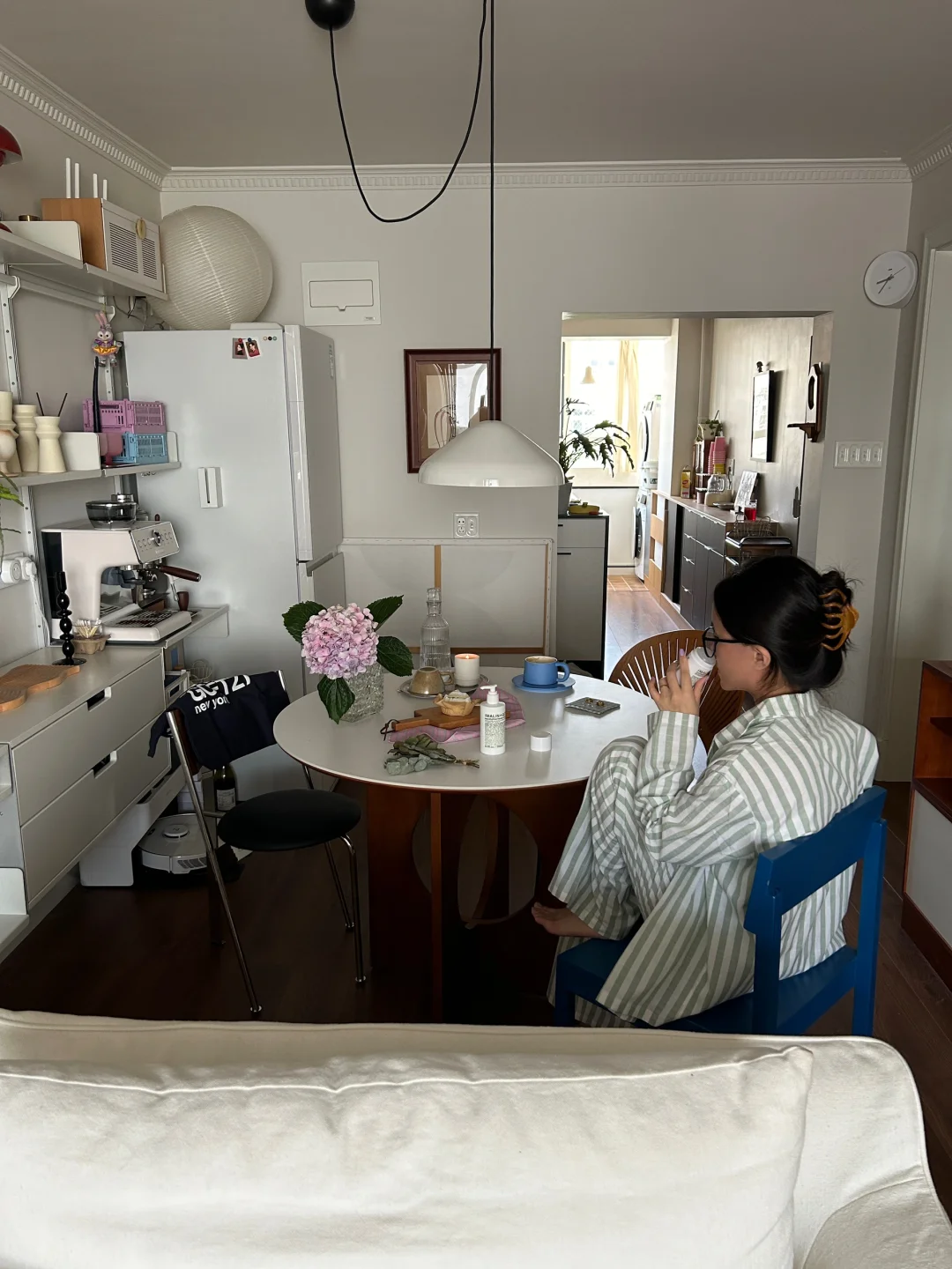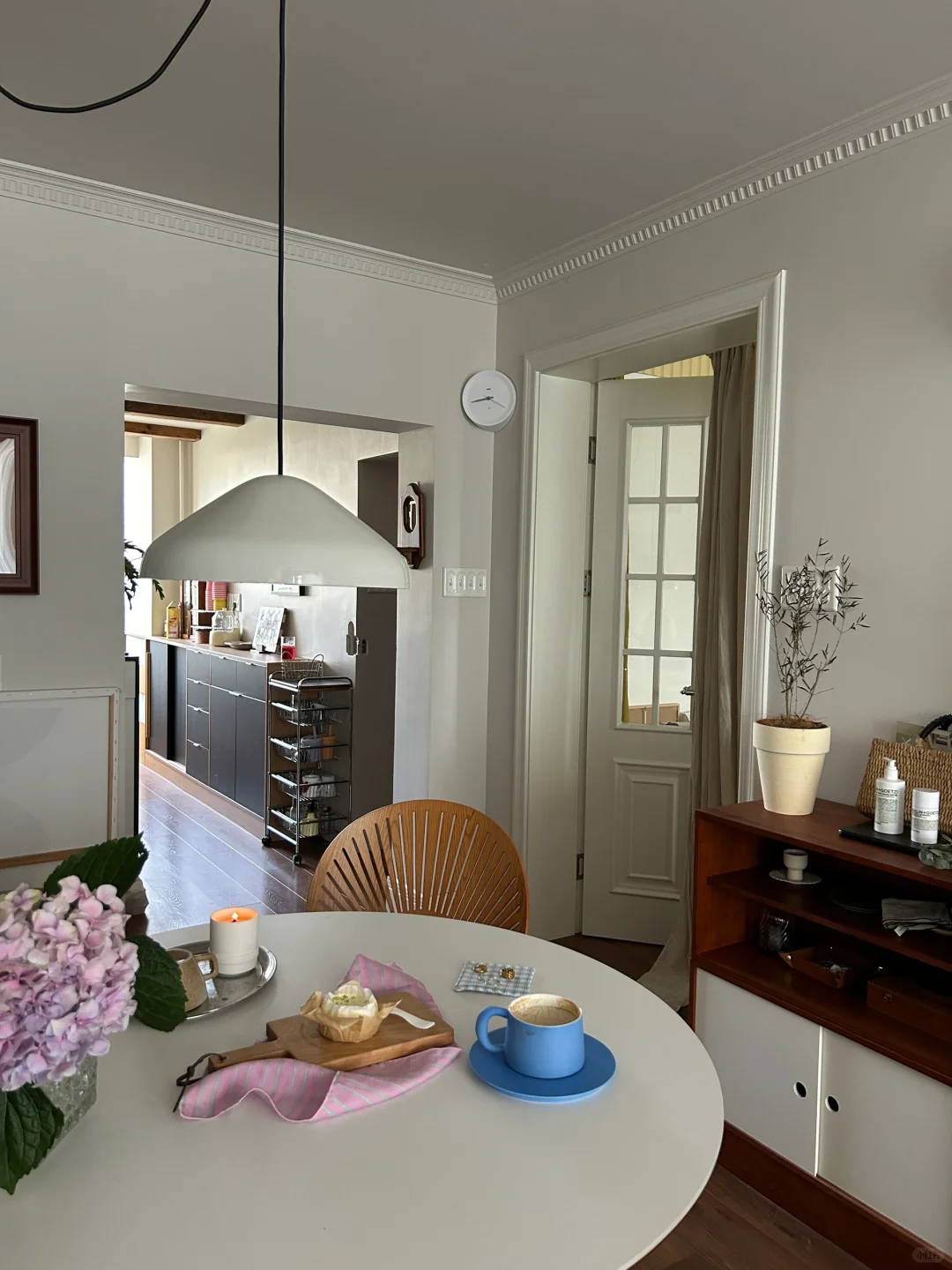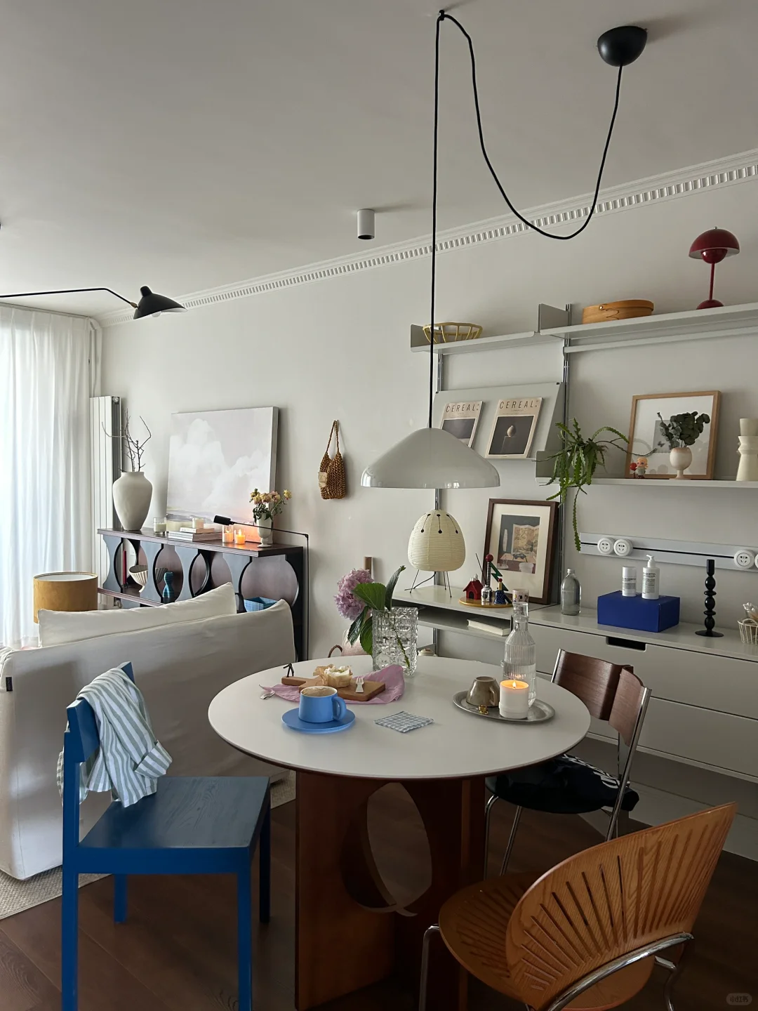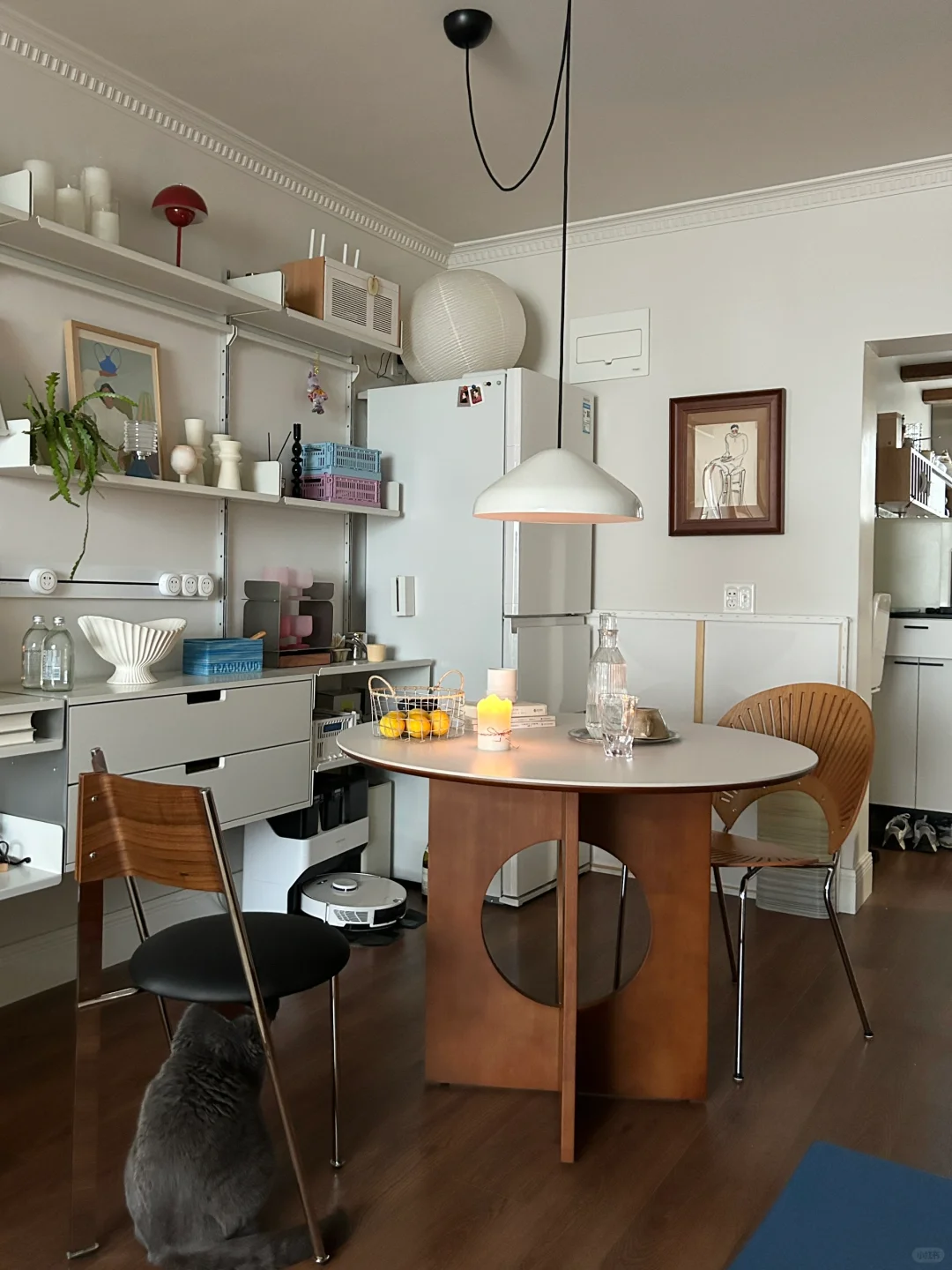圆形餐桌真是夏日宅家的神器啊,不仅能中和长厅的硬朗,还能让我在吹空调的同时享受夏日的快乐