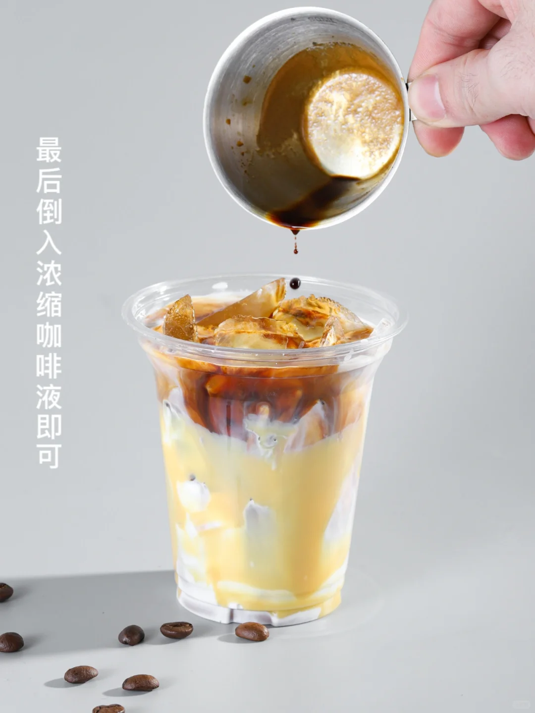 [三R] 最后把第二步骤倒入出品杯中再加上浓缩咖啡液即可