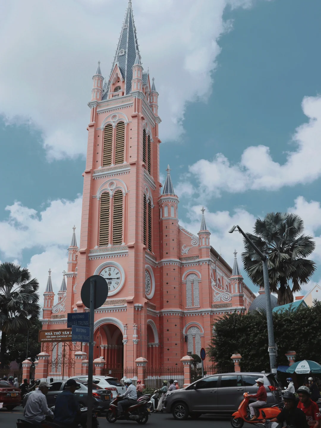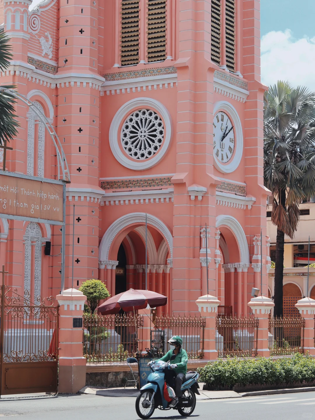 【上午】抵达胡志明机场后乘坐109路公交直达青旅存放行李,并步行至𝖳𝖺𝗇 𝖣𝗂𝗇𝗁 𝖢𝗁𝗎𝗋𝖼𝗁「粉色教堂」打卡 𝗉.𝗌.一路上有超多路边摊好吃还便宜