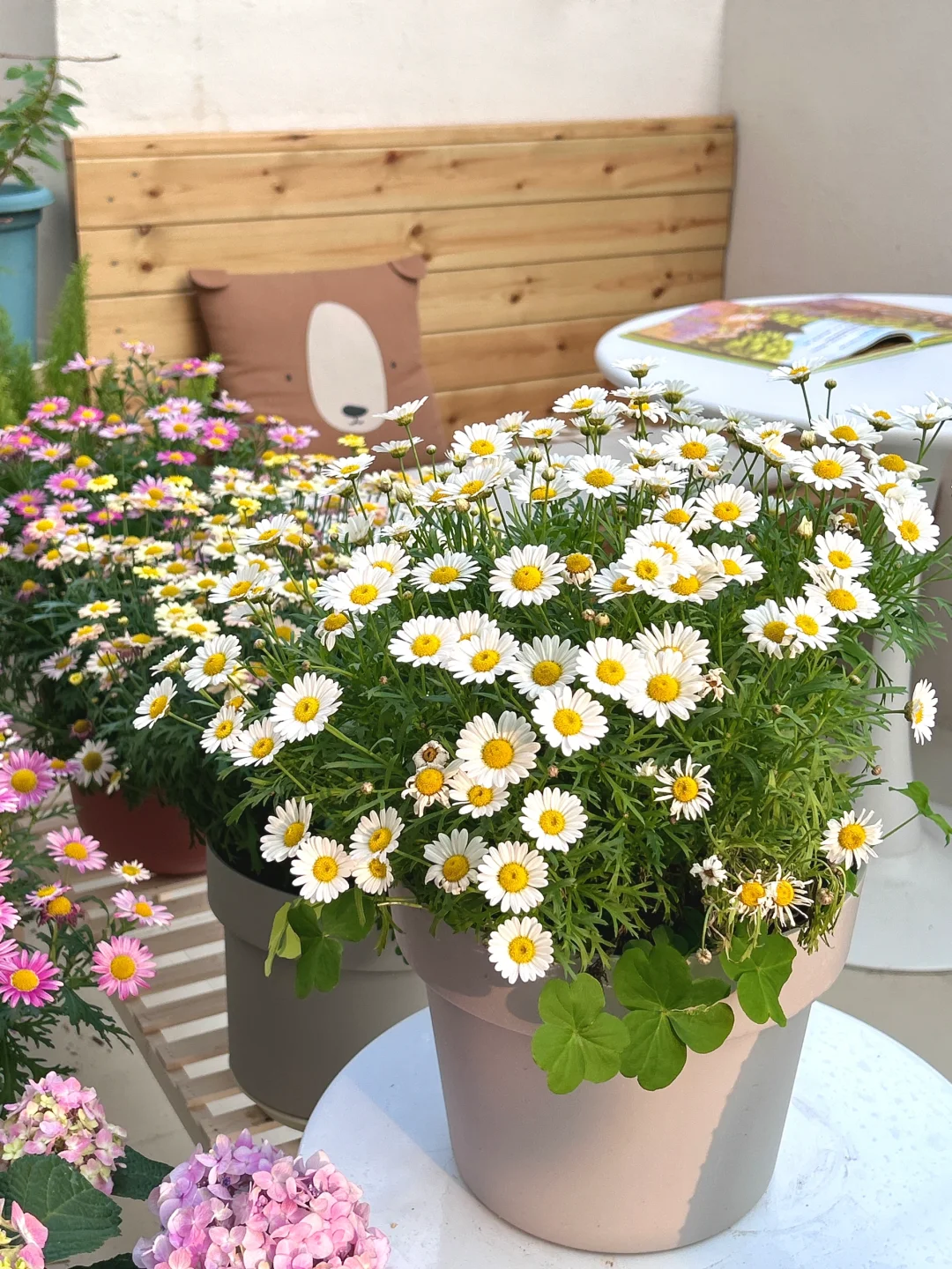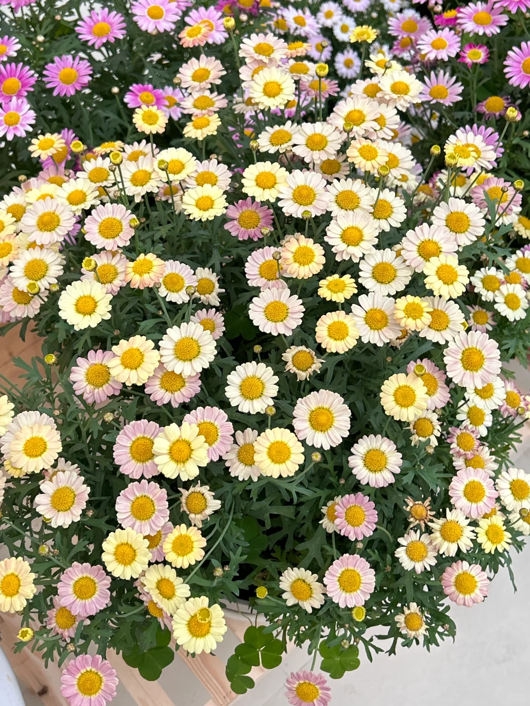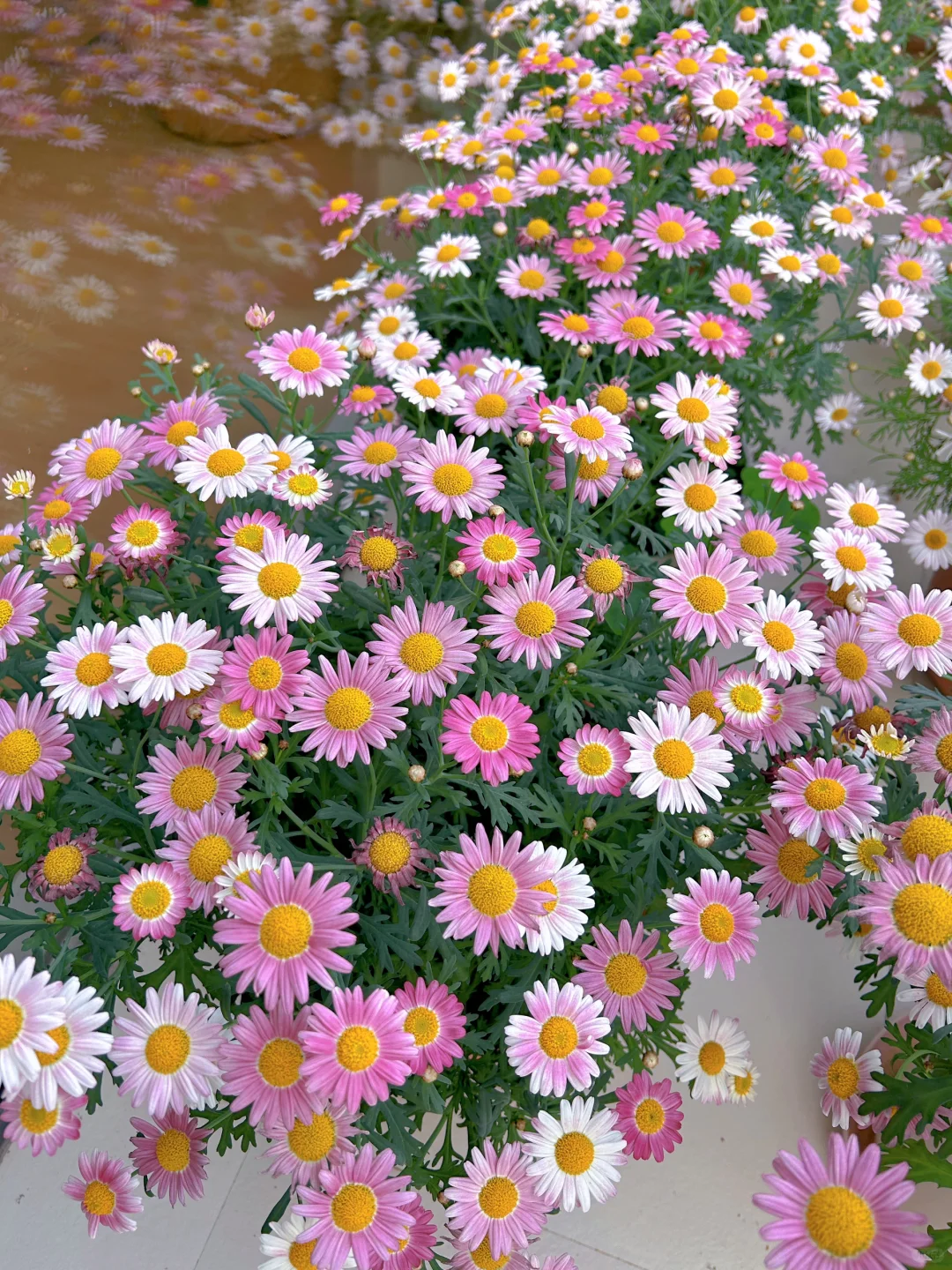 🌳玛格丽特:去年10月底入手了20多颗💰2块多一颗的小苗~ 直接用大盆种,中途打顶了2次,现在开花已经快一个月了(应该能开到4月底),撑起了整个阳台,不要太值!