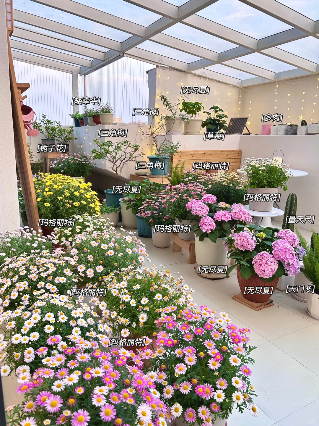 去年10月底花了200+买了玛格丽特、无尽夏、三角梅等花苗,没想到才4个月让我像换了一个阳台!