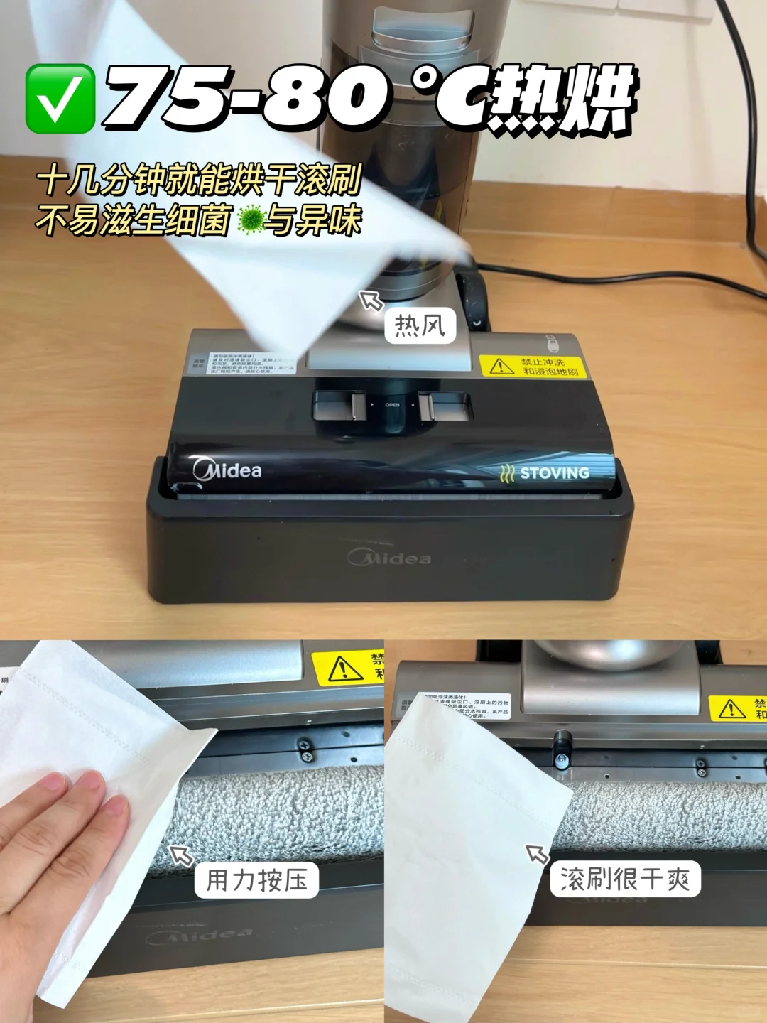 75-80℃热烘,十几分钟就能彻底烘干了,不容易滋生细菌🦠与异味~